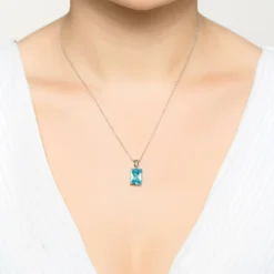 Latelita Alexandra Rectangle Gemstone Necklace Silver Blue Topaz