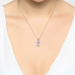 Latelita Alexandra Rectangle Gemstone Necklace Silver Morganite
