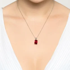 Latelita Alexandra Rectangle Gemstone Necklace Silver Colombian Emerald