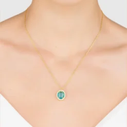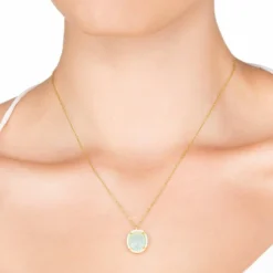 Latelita Beatrice Oval Gemstone Pendant Necklace Gold Aqua Chalcedony