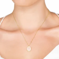 Latelita Beatrice Oval Gemstone Pendant Necklace Gold Rose Quartz