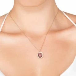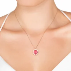 Latelita Beatrice Oval Gemstone Pendant Necklace Rose Gold Pink Tourmaline