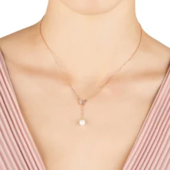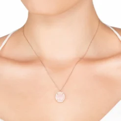 Latelita Beatrice Oval Gemstone Pendant Necklace Rose Gold Rose Quartz