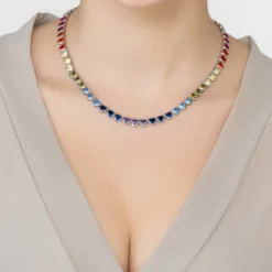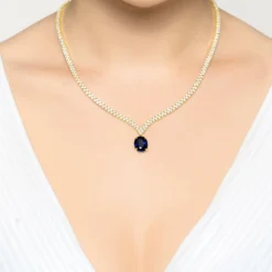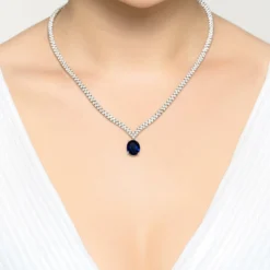Latelita Garbo Oval Gemstone Tennis Necklace Sapphire Silver