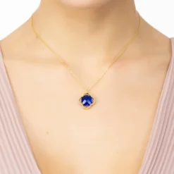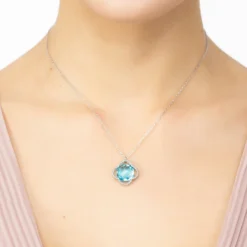 Latelita Open Clover Flower Gemstone Necklace Silver Blue Topaz