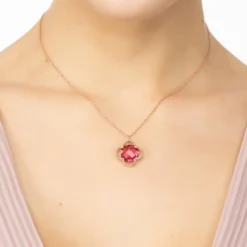 Latelita Open Clover Flower Gemstone Necklace Rosegold Pink Tourmaline