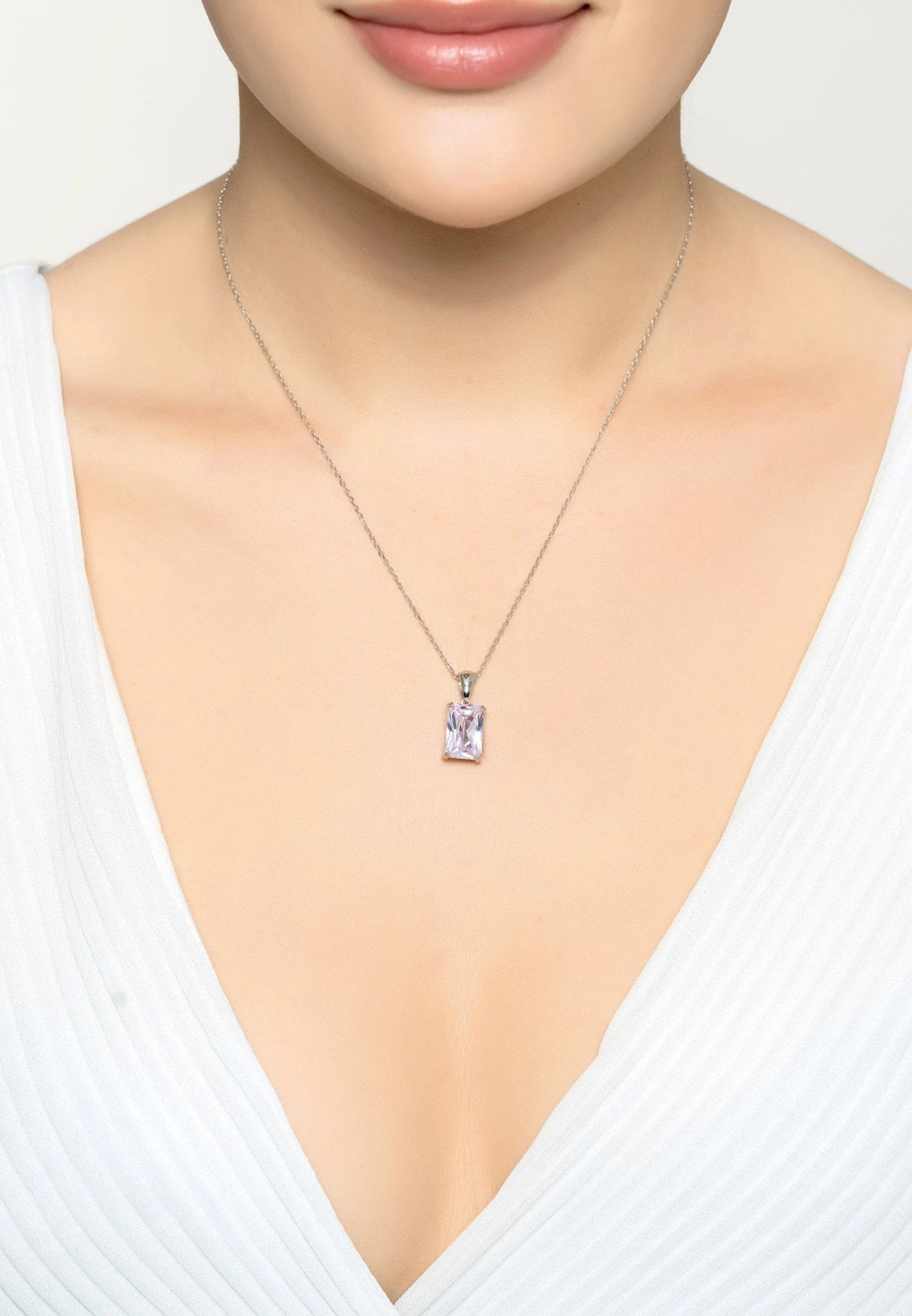 The Alexandra Rectangle Gemstone Necklace Silver Morganite is the perfect addition to your jewellery collection! This luxurious yet playful piece is made with 925 sterling silver for a one-of-a-kind, eye-catching look. We’ve added a beautiful rectangular lab-grown Morganite set in an open design that sparkles with simulated diamonds around the sides and back to make sure you stand out from the crowd (1.4cm x 0.9cm). Plus, we had comfort and versatility in mind – the chain has an adjustable length between 40 and 45 cm so you can have it wrap perfectly around any neckline. And at only 3.7 grams, this gorgeous necklace won’t weigh you down!