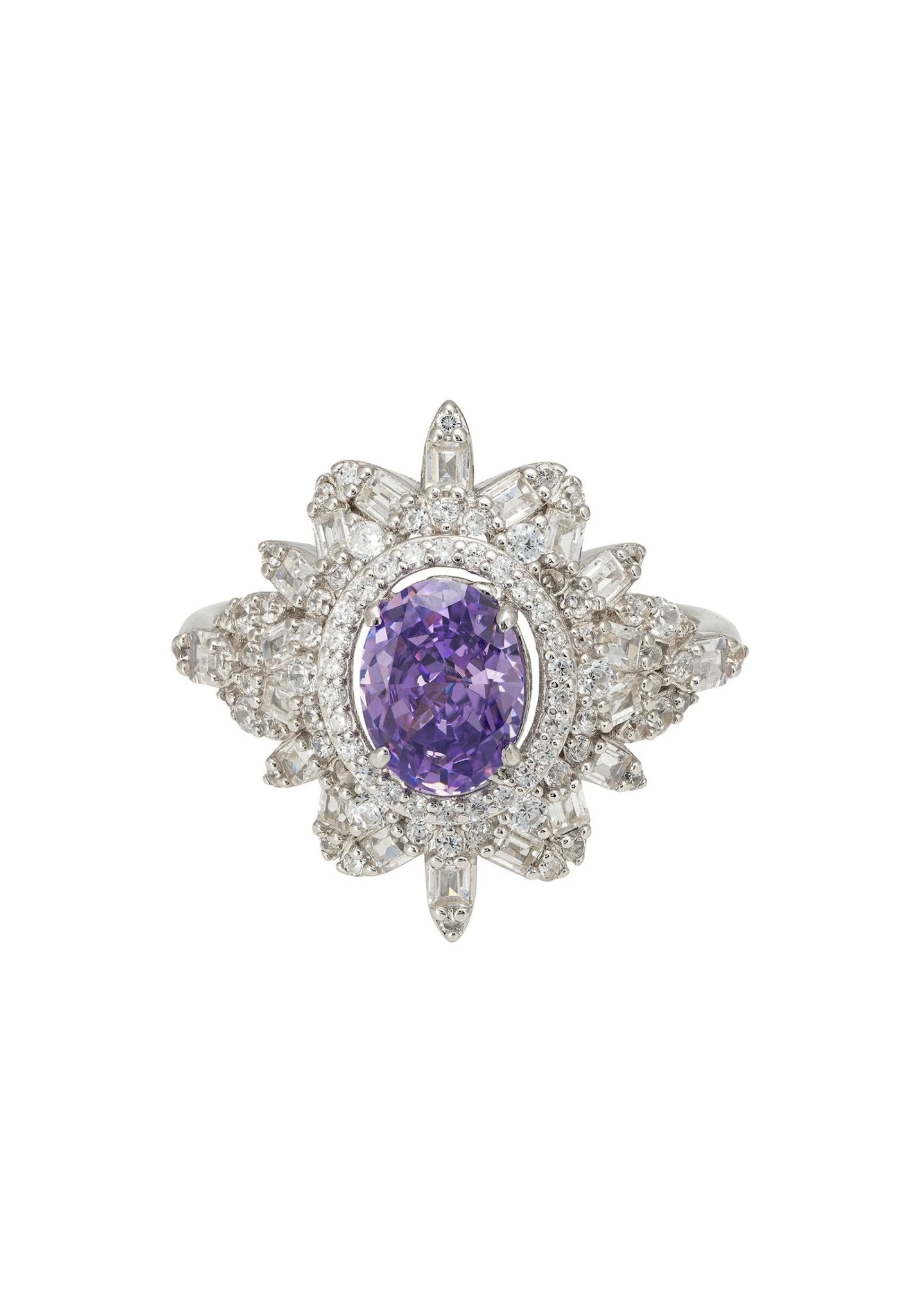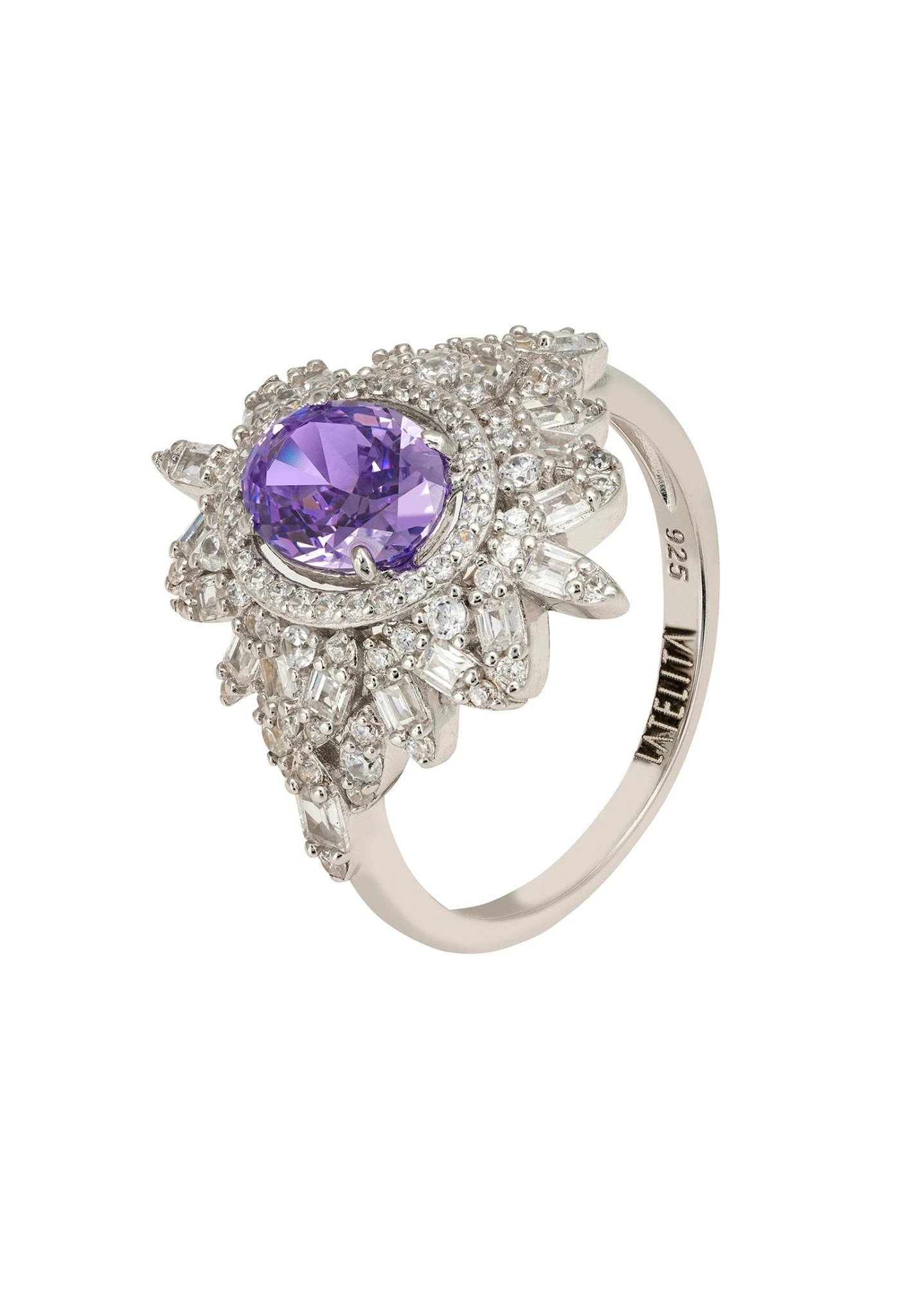 Introducing the Arabesque Splendor Cocktail Ring in lilac amethyst and 925 silverโa perfect blend of elegance and flair. The focal point of this stunner is a lab-created oval lilac amethyst, encircled by twinkling cubic zirconia set in a floral-inspired pattern. With a length of 2.3 cm along your finger, this ring isn’t just jewellery; it’s a conversation starter.