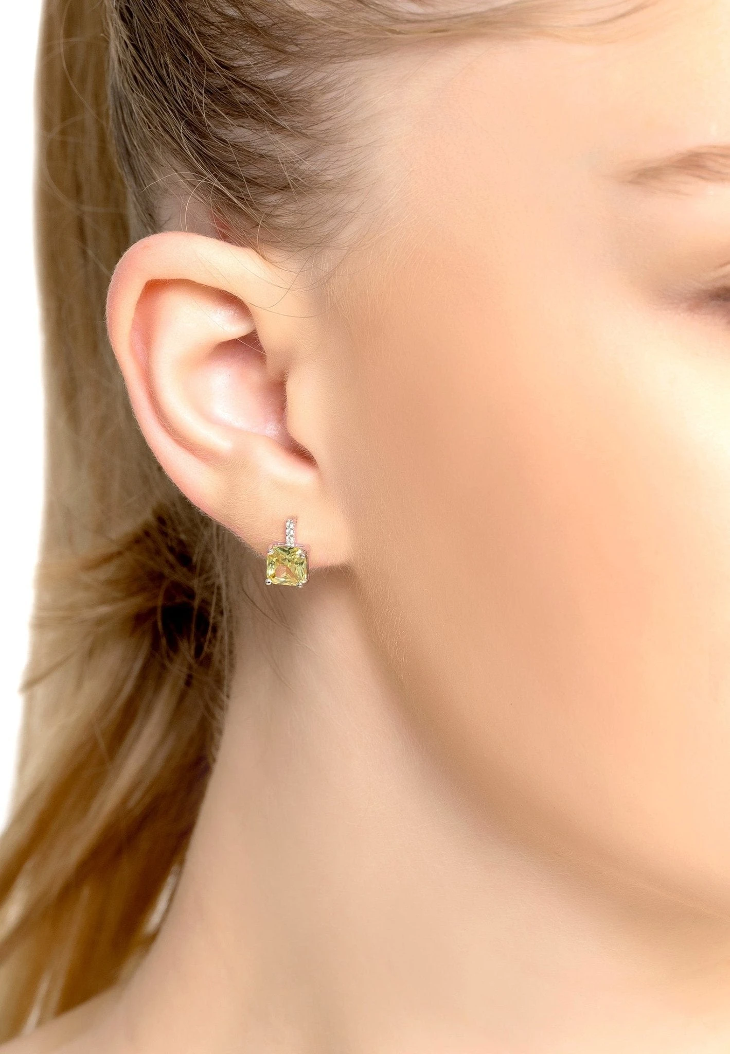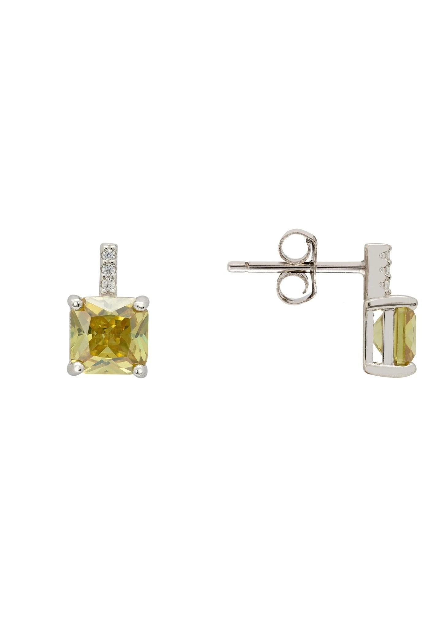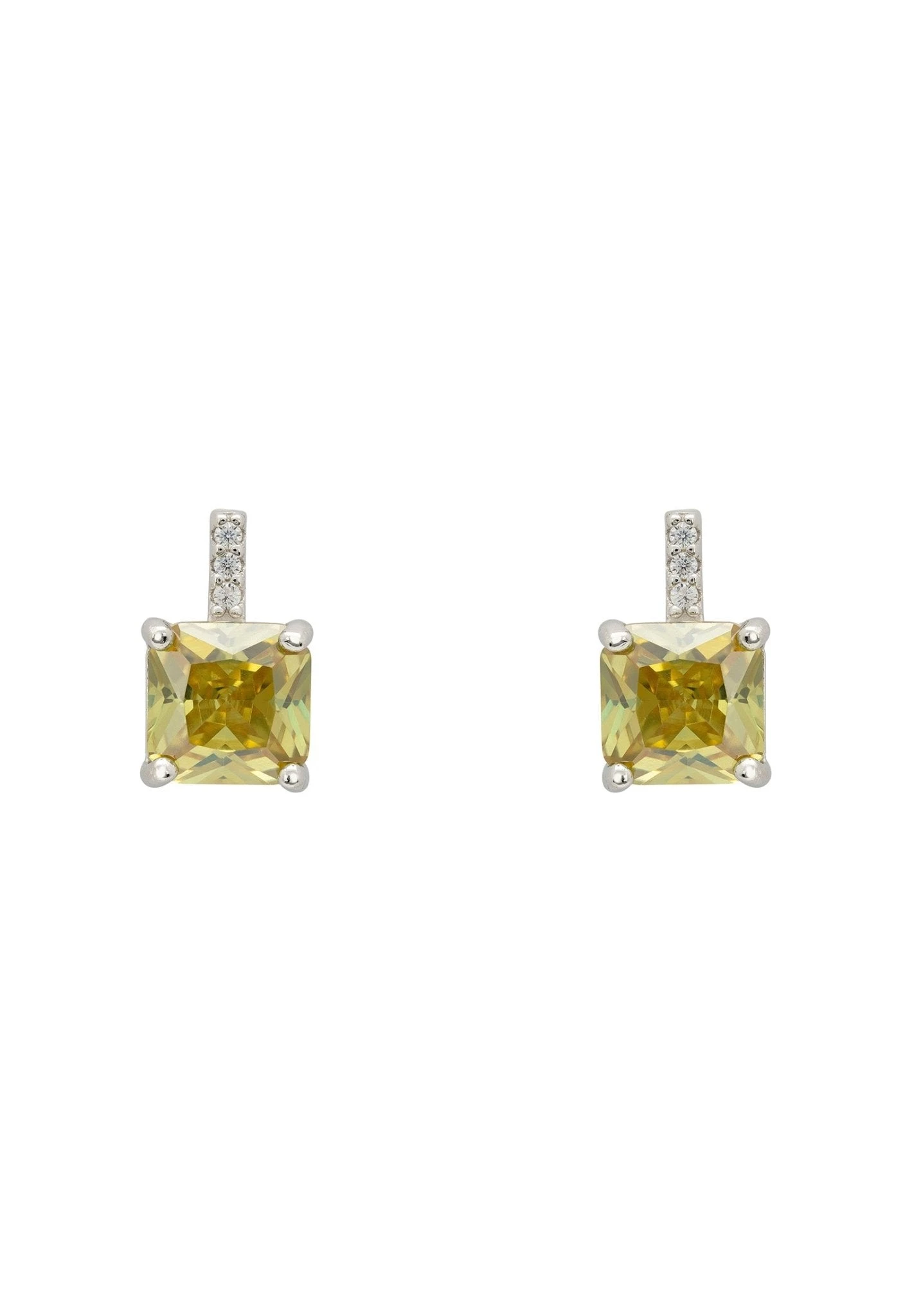 Aria Crystal Stud Earrings Silver are just the perfect accessory to wear on any occasion. Crafted by hand in 925 sterling silver, these subtle yet stylish earrings will become a wardrobe staple. These sophisticated studs feature the main attraction of a colourful square cut peridot green zirconia, boosted by white zirconia detailing that flows to the butterfly post fastening.