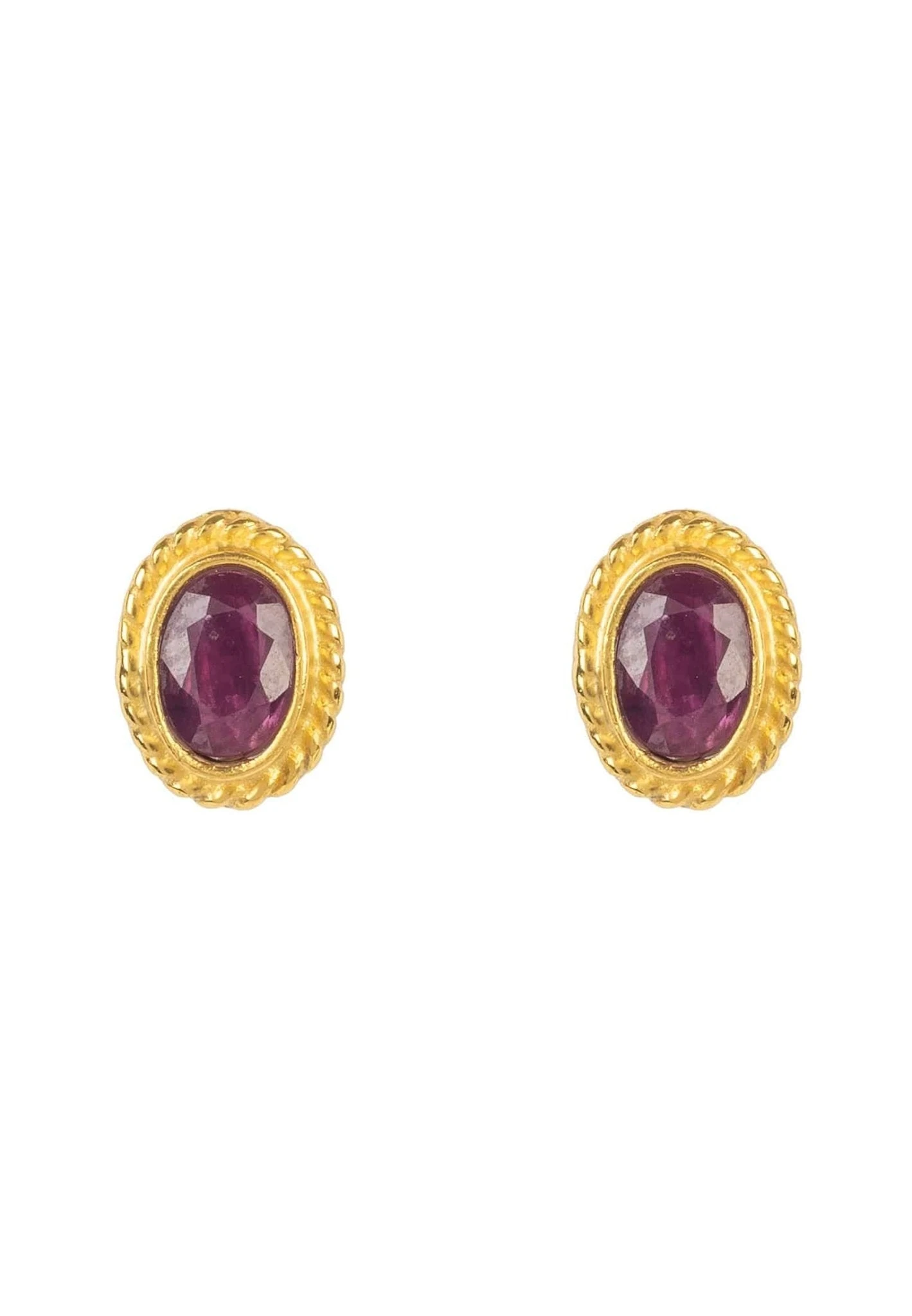 Latelita’s Birthstone Earrings for the month of July feature two central Ruby gemstones. With their rich red tones, these cute stud earrings are set within a twisted rope design, and dipped in 22ct gold. These earrings make for an ideal birthday gift, especially to lovers of gemstone and delicate jewellery. Ruby is the the birthstone for Cancer and the month of July, and the gemstone for the 40th anniversary of marriage