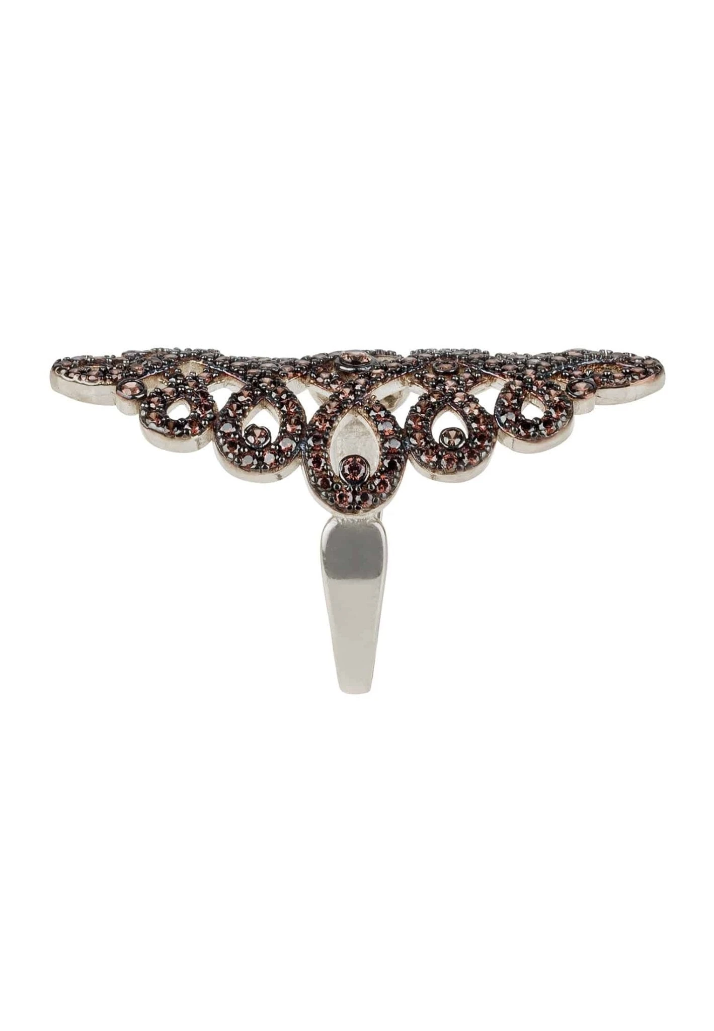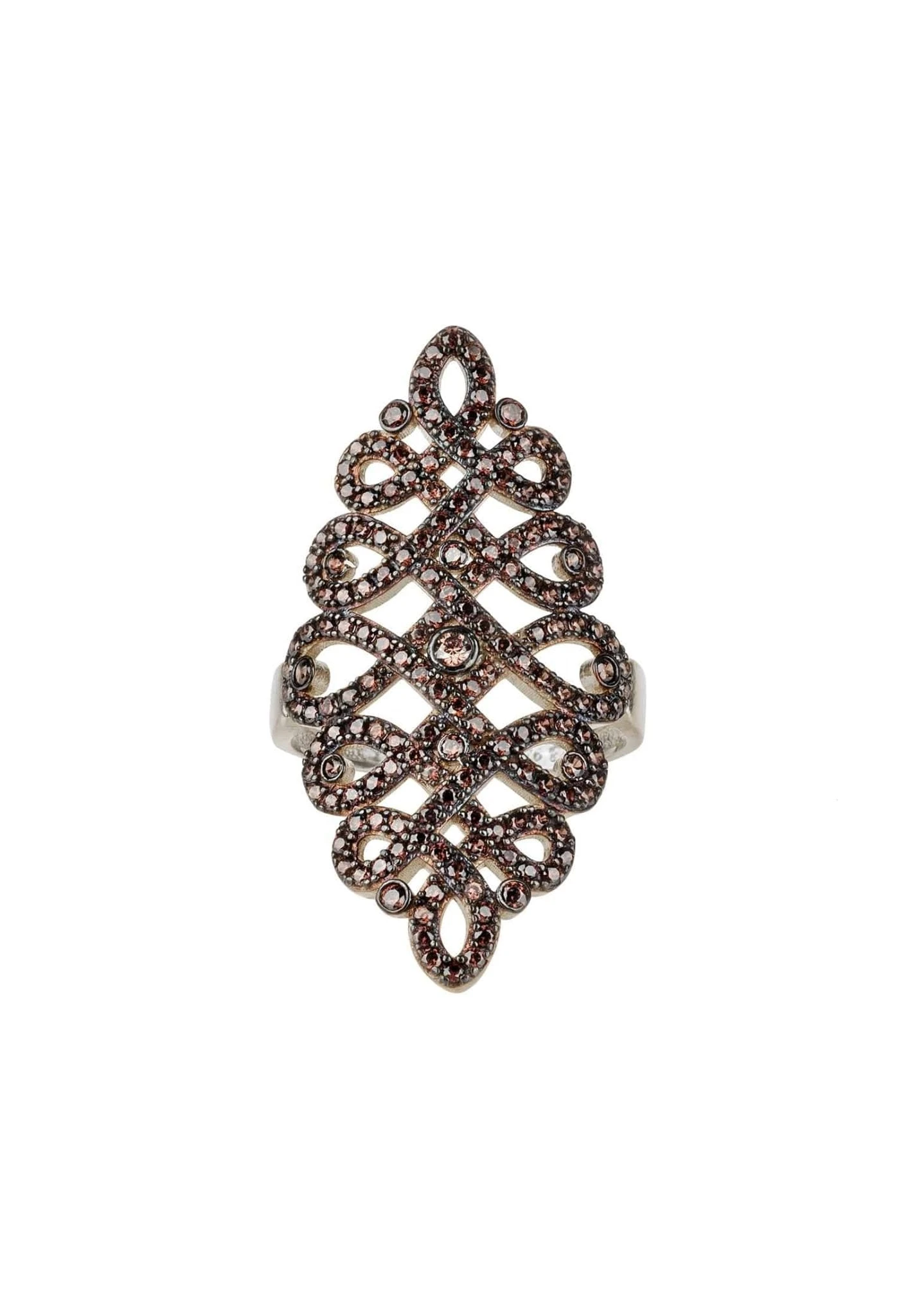 Ideal for those who adore statement jewellery. The stunning calligraphy wave ring has a continuous flowing pattern that look as if they have been scripted from a writers quill, adorned with sparkling zircons that dazzle and shimmer.