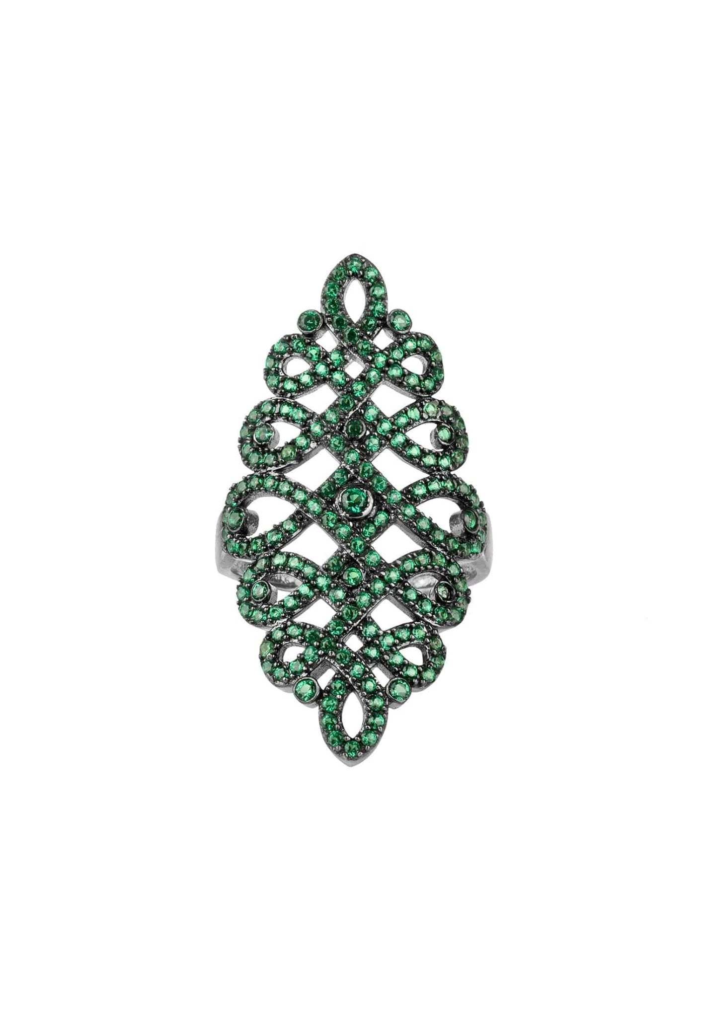 Ideal for those who adore statement jewellery. The stunning calligraphy wave ring has a continuous flowing pattern that look as if they have been scripted from a writers quill, adorned with sparkling zircons that dazzle and shimmer.