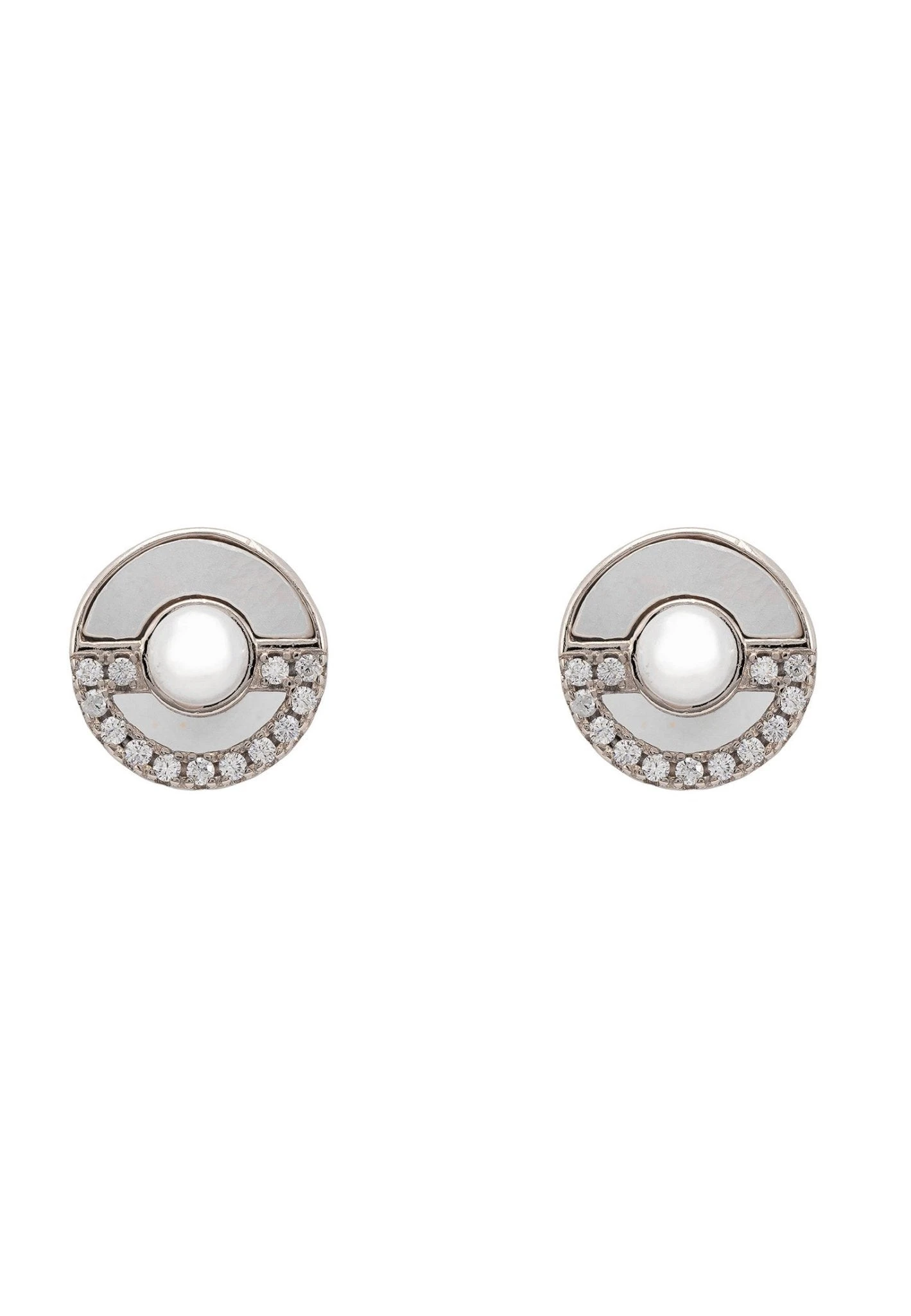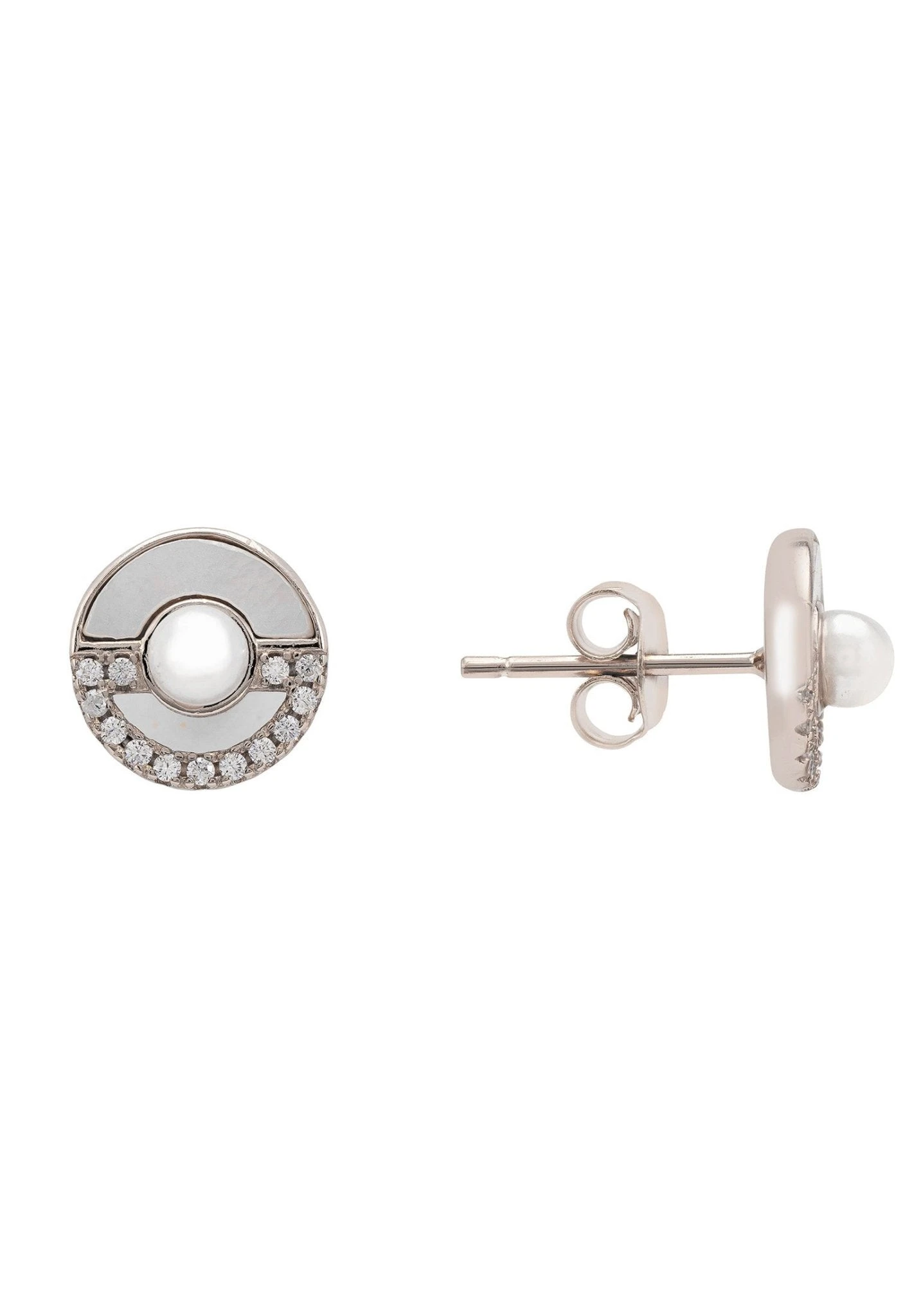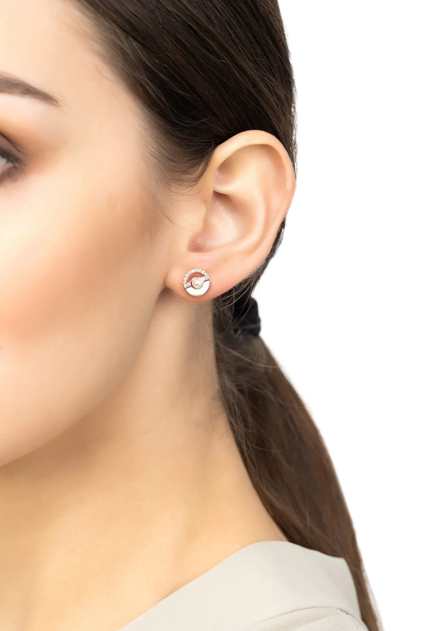 These lovely earrings are handcrafted from 925 sterling silver and feature a lovely semi-circle inlay of white mother of pearl. The other half of the circle is left open, with cubic zirconia stones decorating the outer edge. In the centre of each earring sits a small, round pearl to add a touch of luxury. Looking for the perfect present? Our circle & pearl studs are sure to impress! Birthdays, bridesmaids, or any other special lady in your life will love these beautiful earrings.