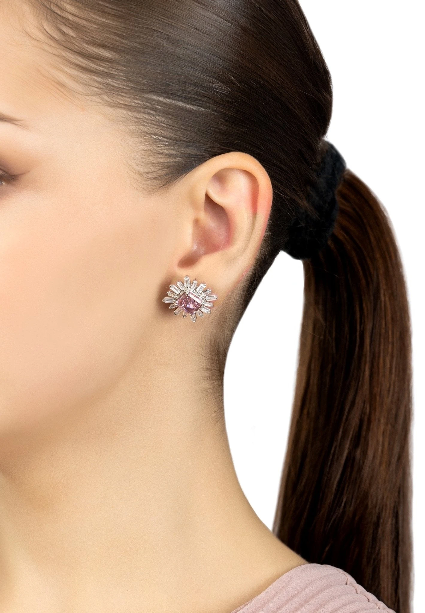 If you want a stylish pair of earrings that can take you from day to night, look no further than our beautiful Daisy Flower Earrings! Handcrafted from 925 sterling silver, these earrings feature a square pink Morganite gemstone at the centre, surrounded by petals of baguette cut zirconia.