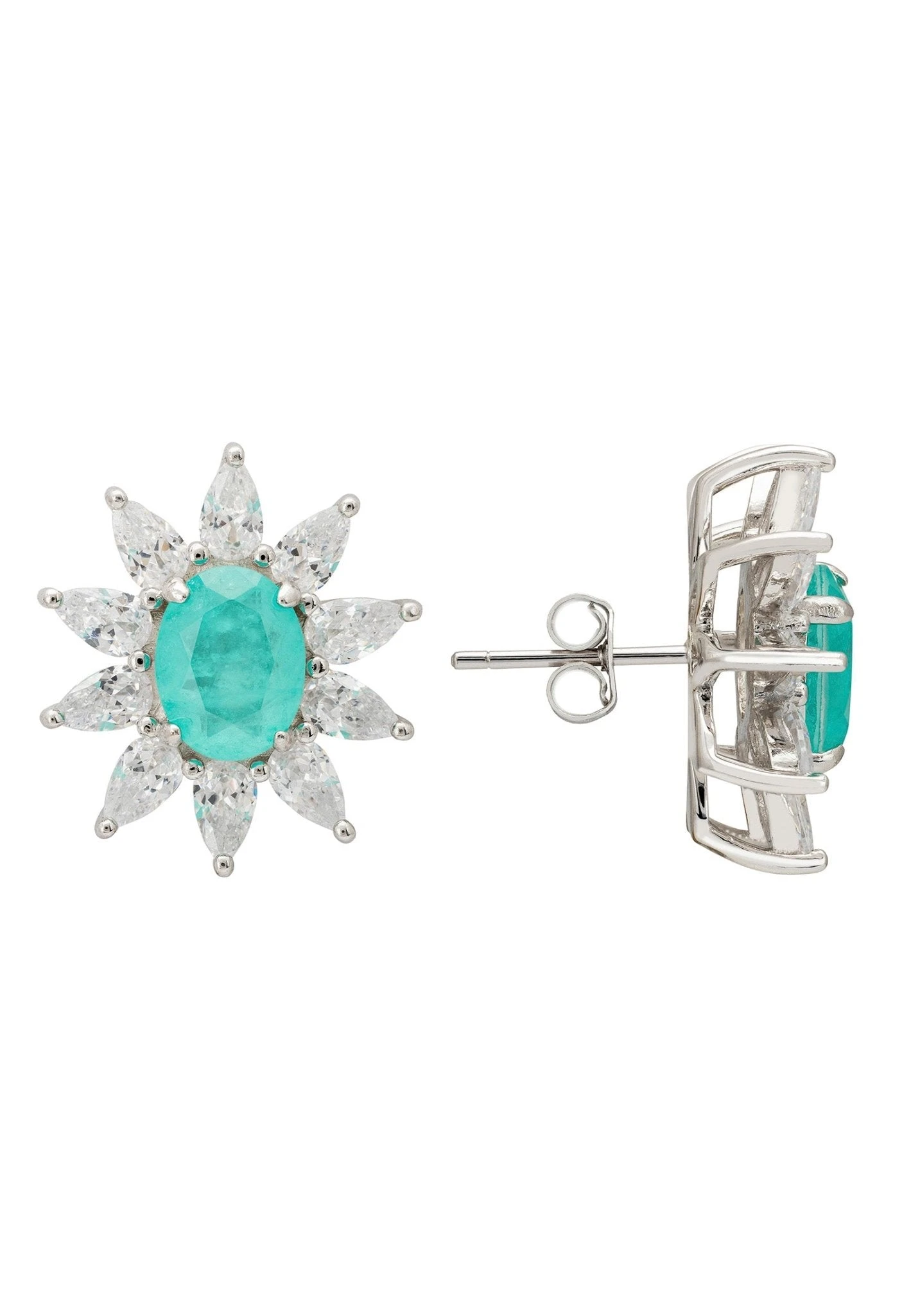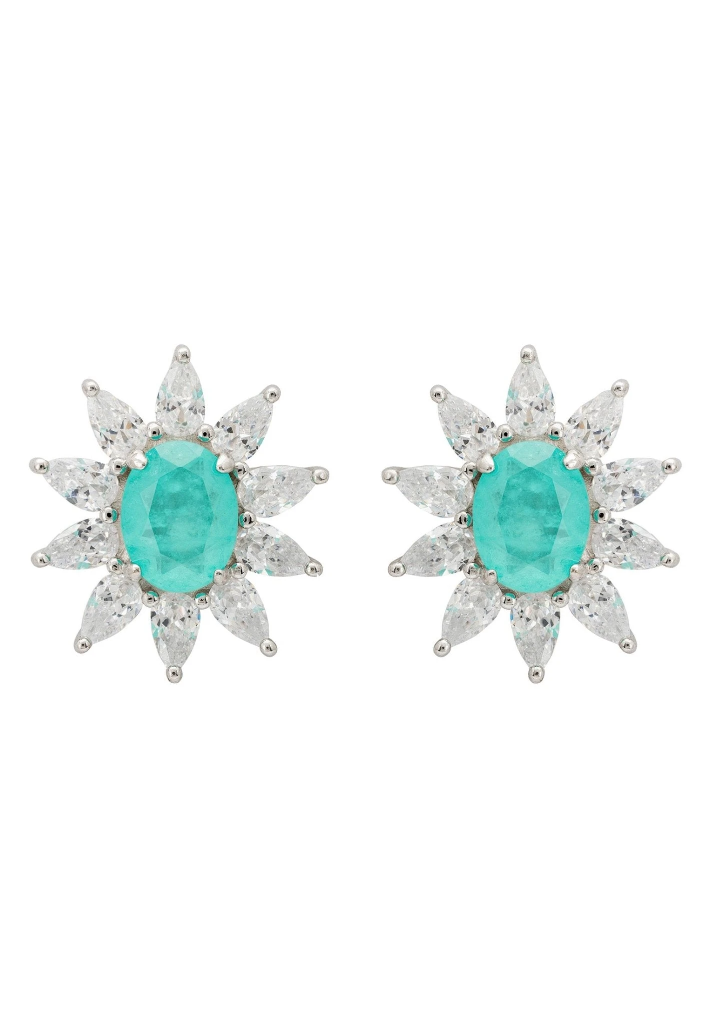 Nestled around the Paraiba tourmaline are petals of teardrop-cut cubic zirconia, twinkling as they catch the light. Sized at 2.2 cm in length and 1.8 cm in width, and weighing just 9.0 grams, these earrings are both stylish and comfortable to wear.