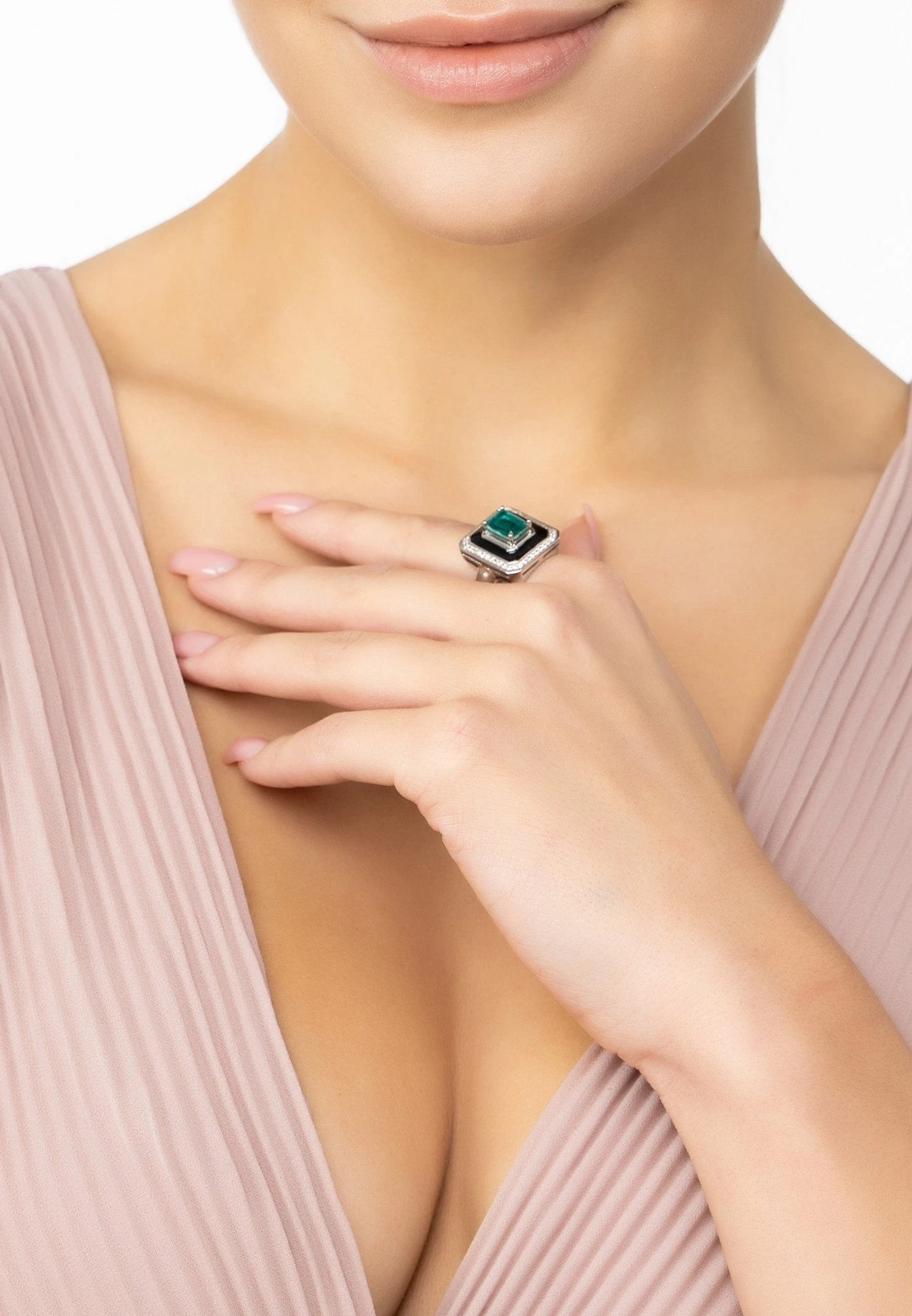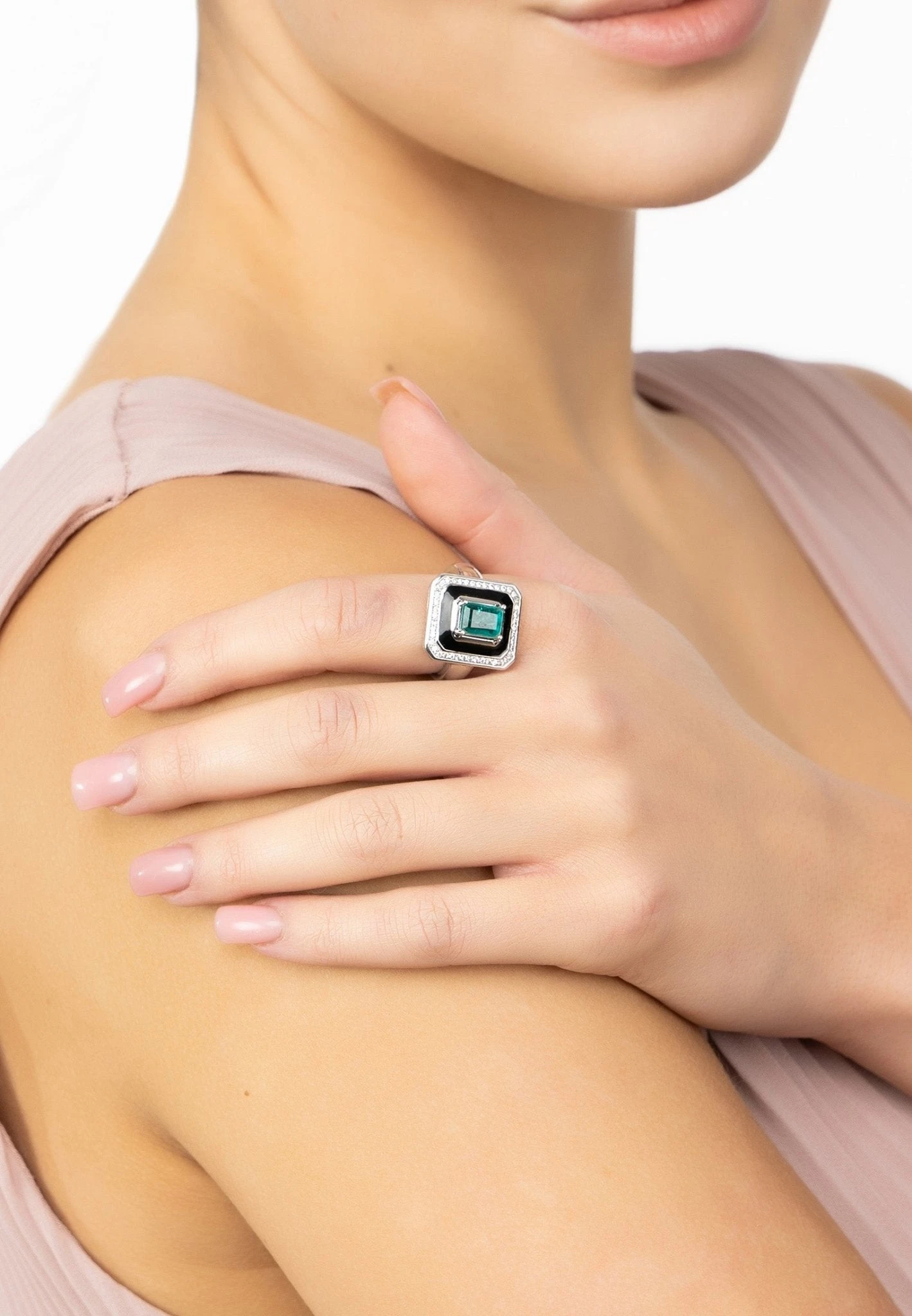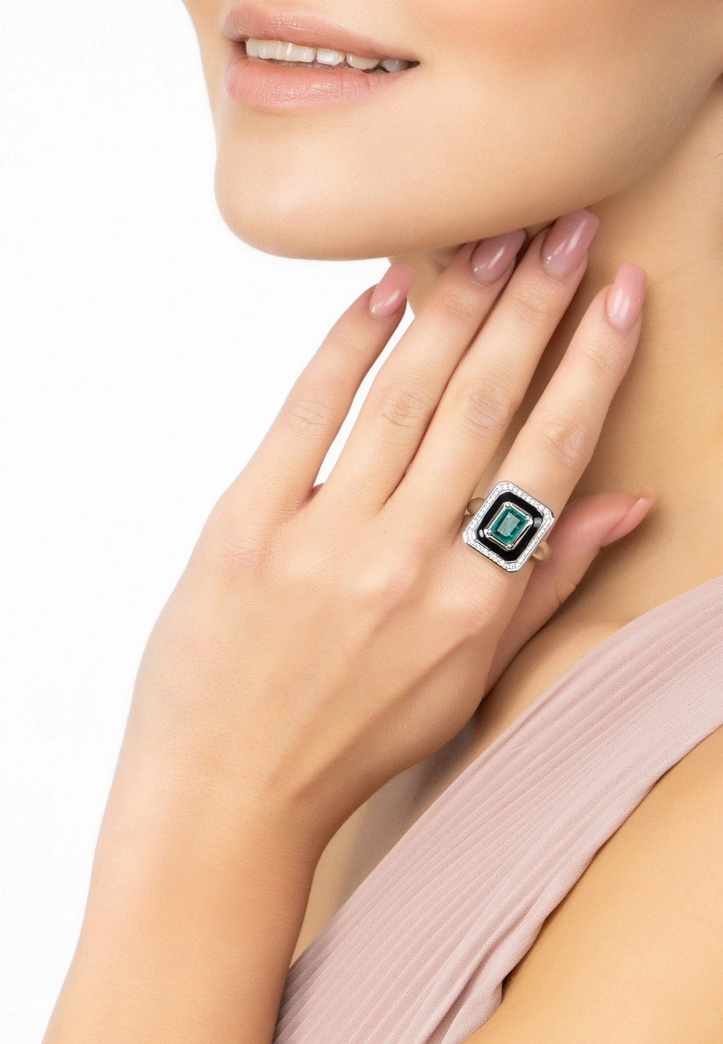 Feel like a glamour goddess and let the Deco Emerald & Enamel Ring Silver take you back to the glitz and glamour of the roaring twenties.
