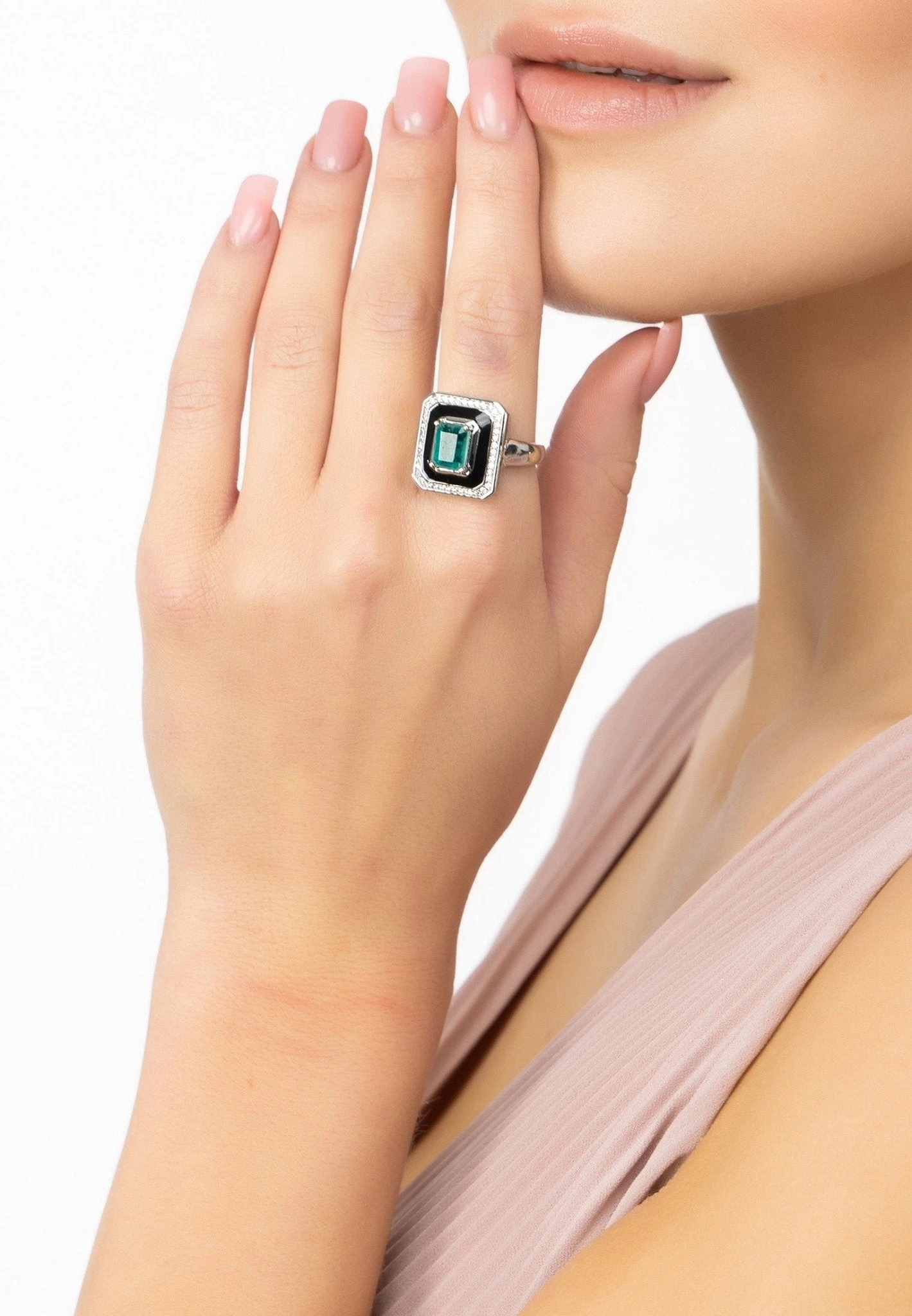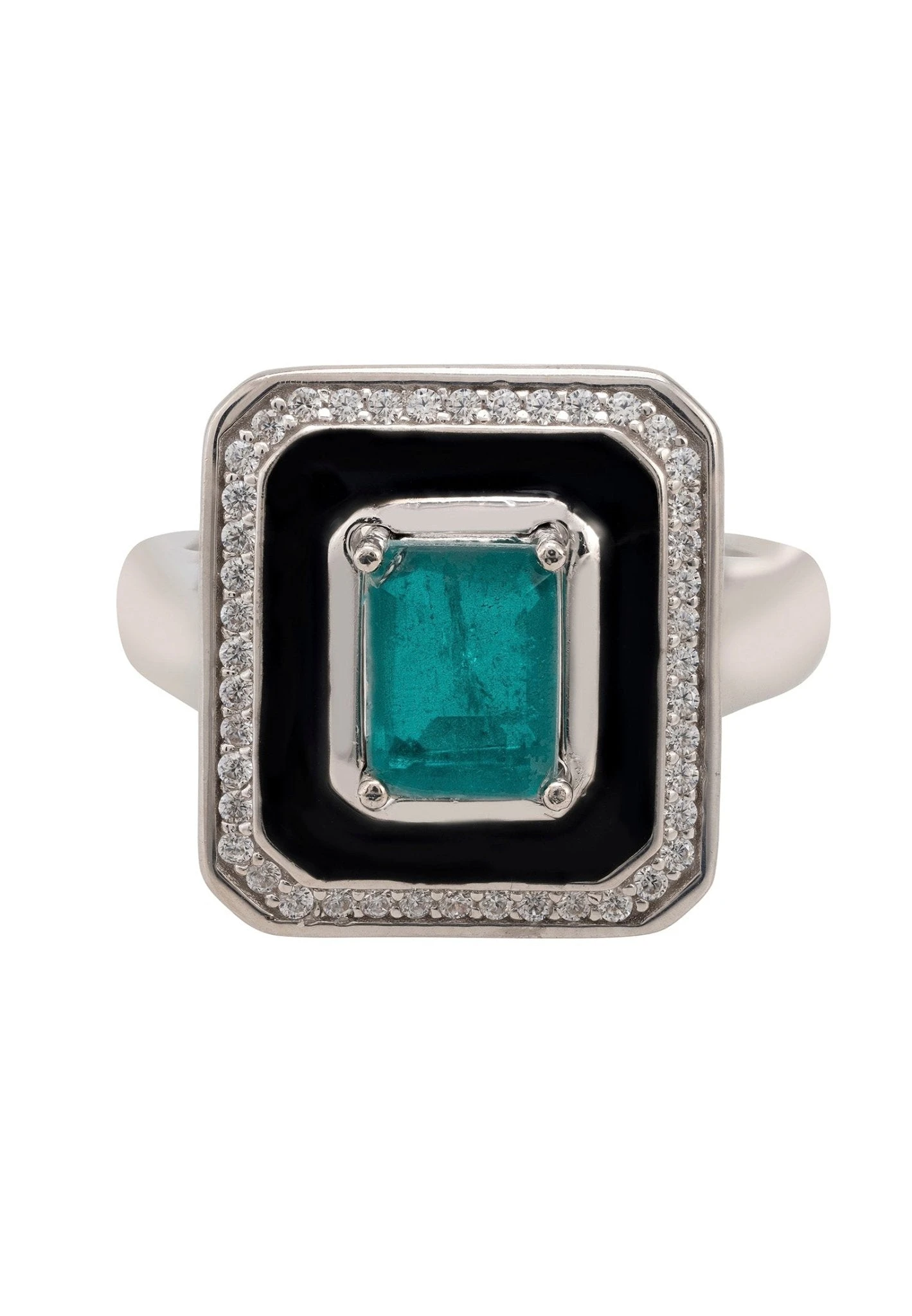 Add a touch of glamour to your look with this stunning Deco Emerald & Enamel Ring Silver. Handcrafted from 925 sterling silver, this cocktail ring is inspired by the 1920s.