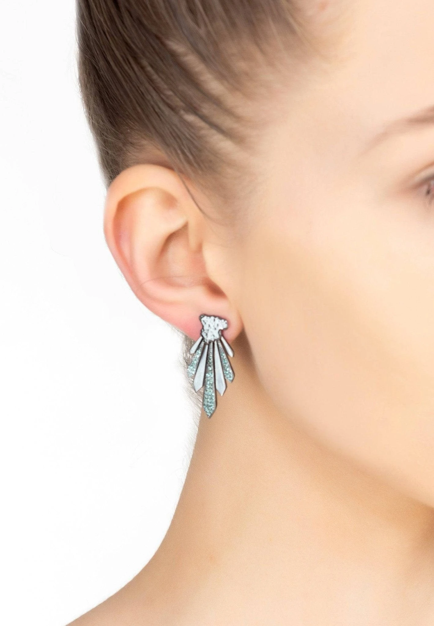 The deco fan ear jacket earrings, with their bold and vibrant colours combined with the geometric shapes are inspired by the art deco wave of the1920’s. Adorned with Latelita London signature zircon detailing they are perfect for those who covet delicate jewellery.
