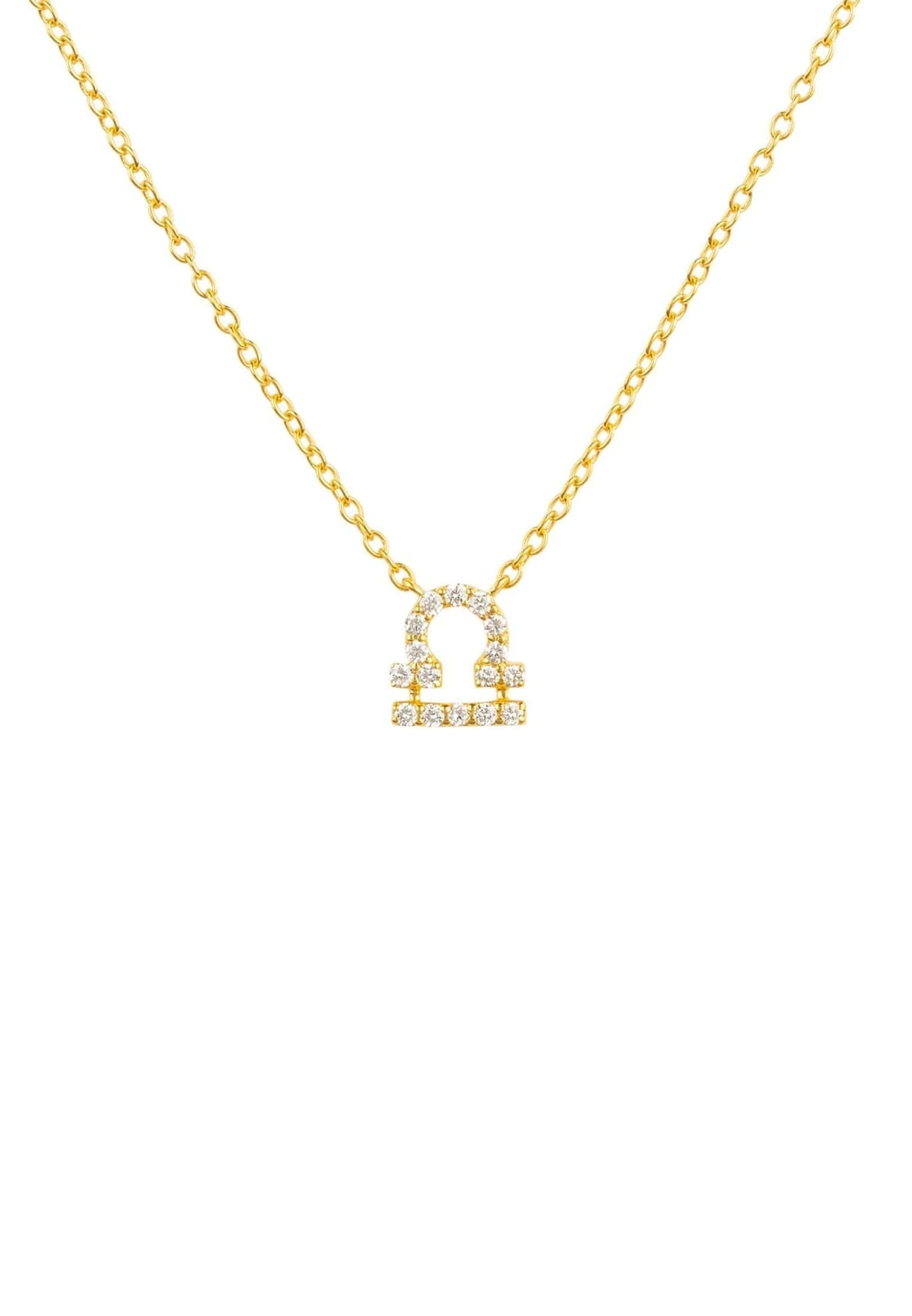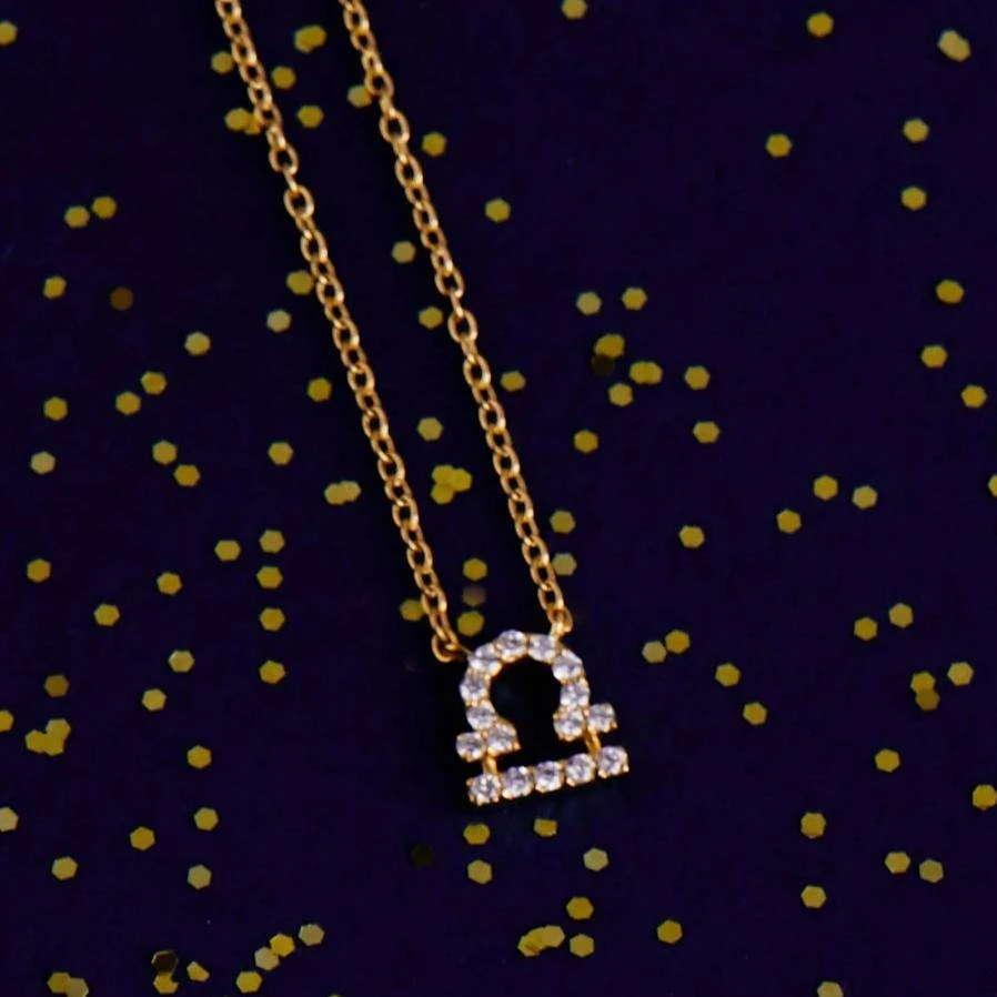 Discover the intricacies of astrology with this beautiful Diamond Zodiac Necklace Gold Libra. This item is designed with 925 sterling silver dipped in 22ct gold and handset white round brilliant diamonds for extra sparkle.