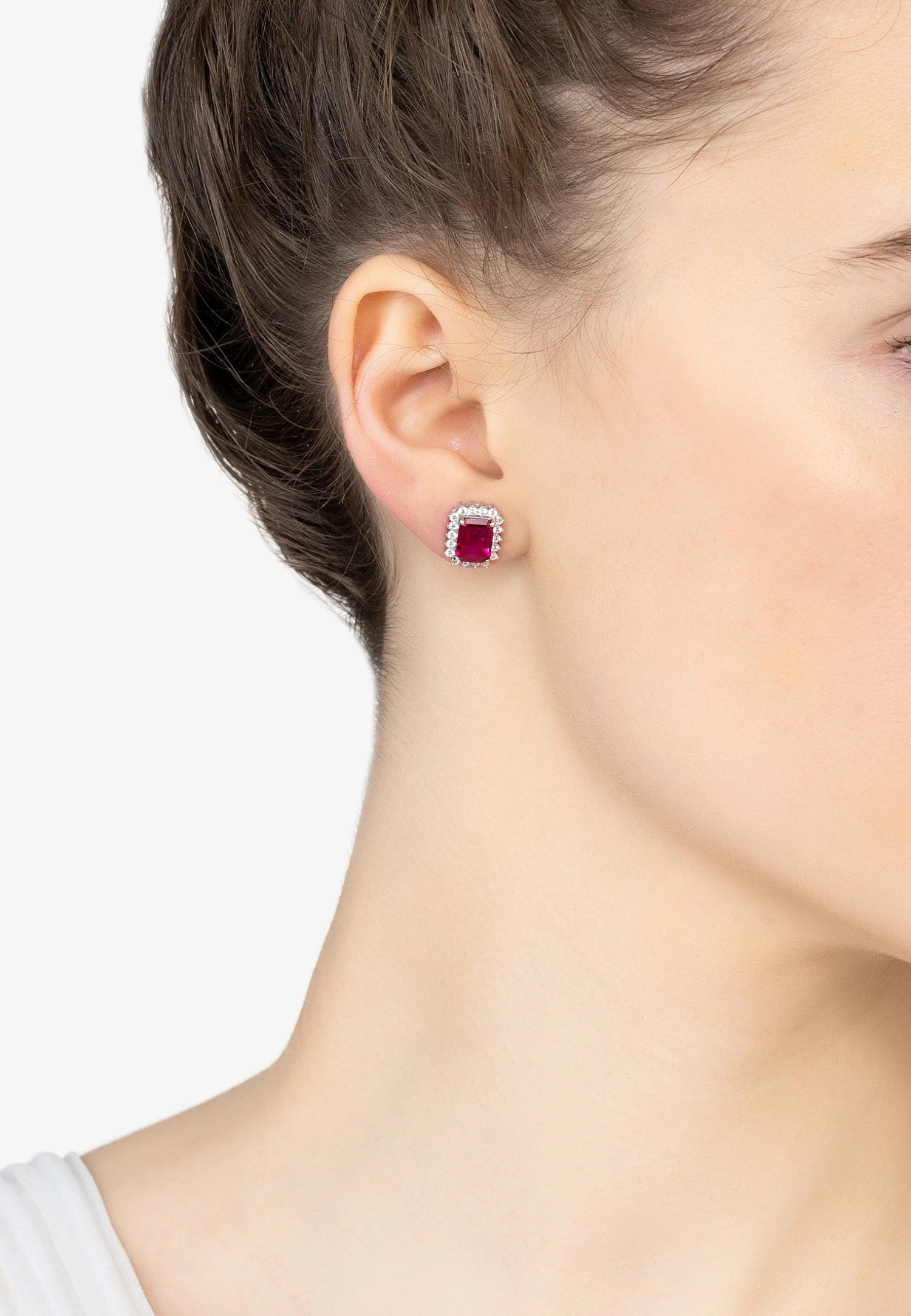 These Rubies are rectangle-cut and brilliantly framed by cubic zirconia, giving you that irresistible sparkle. Set in polished 925 silver, these earrings bring out the fiery red hue of the Ruby, creating an eye-catching contrast that elevates any look. What makes these earrings a must-have is their versatility. They add a subtle touch of luxury to your office attire and easily transition to become the show-stoppers of your evening ensemble.