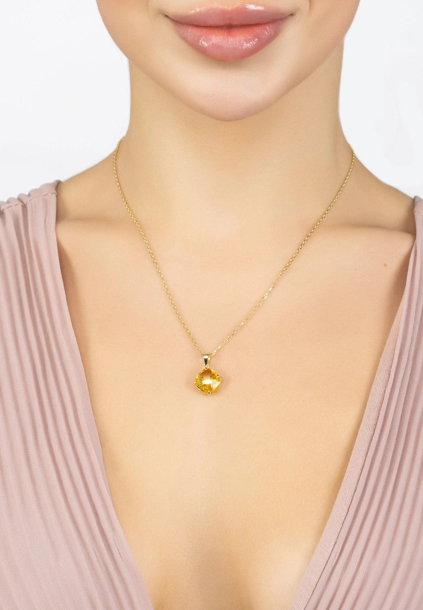 This exquisite Empress Citrine Gemstone Necklace is handcrafted with the finest 925 sterling silver and dipped in luxurious 22ct gold. The necklace boasts a single, stunning citrine gem set along a dainty and elegant chain from a highly polished metallic bail. Perfect for those who appreciate fine quality.