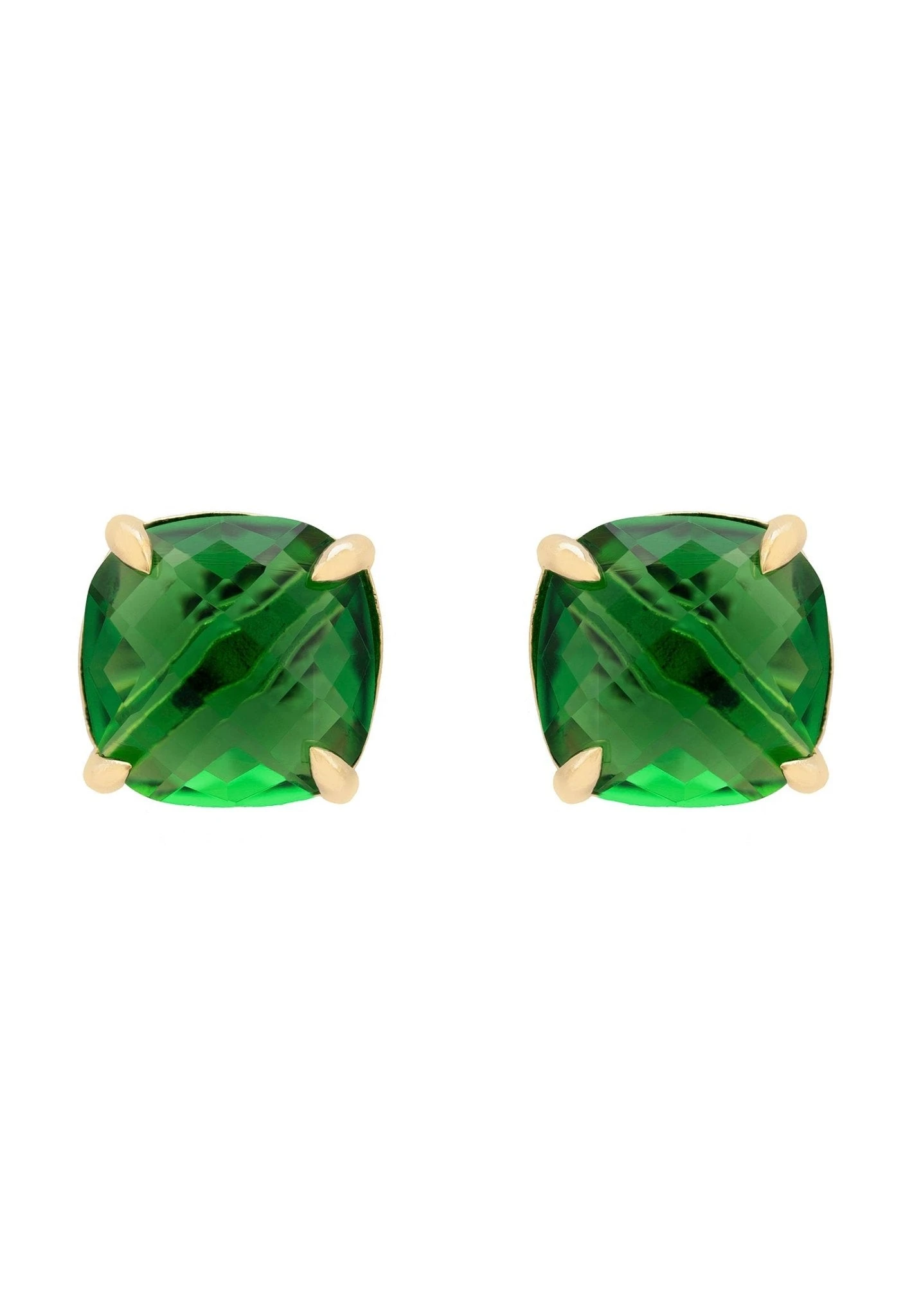 Add a touch of luxury to your look with these Empress Gemstone Stud Earrings. These stylish earrings are handcrafted with 925 sterling silver, dipped in luxurious 22ct gold. They feature an emerald gemstone in a pronged setting and are perfect for adding a touch of elegance to any outfit, day or night.