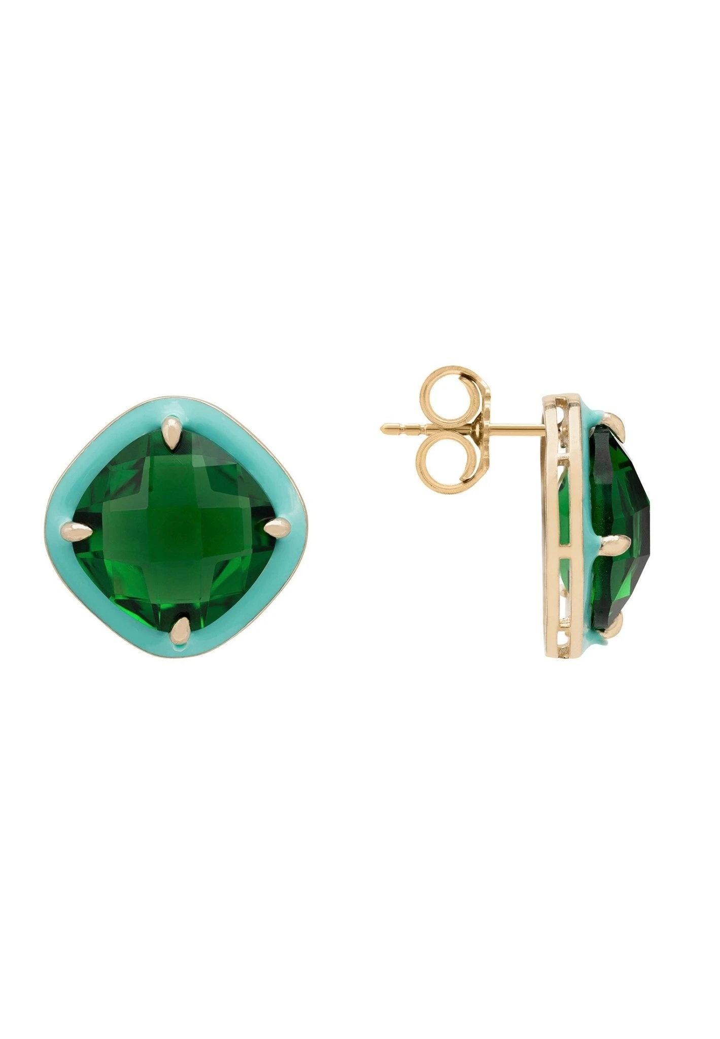 Looking for a bit of luxury in your life? Our Enamel & Emerald Gemstone Cushion Stud Earrings Gold are the perfect way to add a touch of glamour to any outfit.