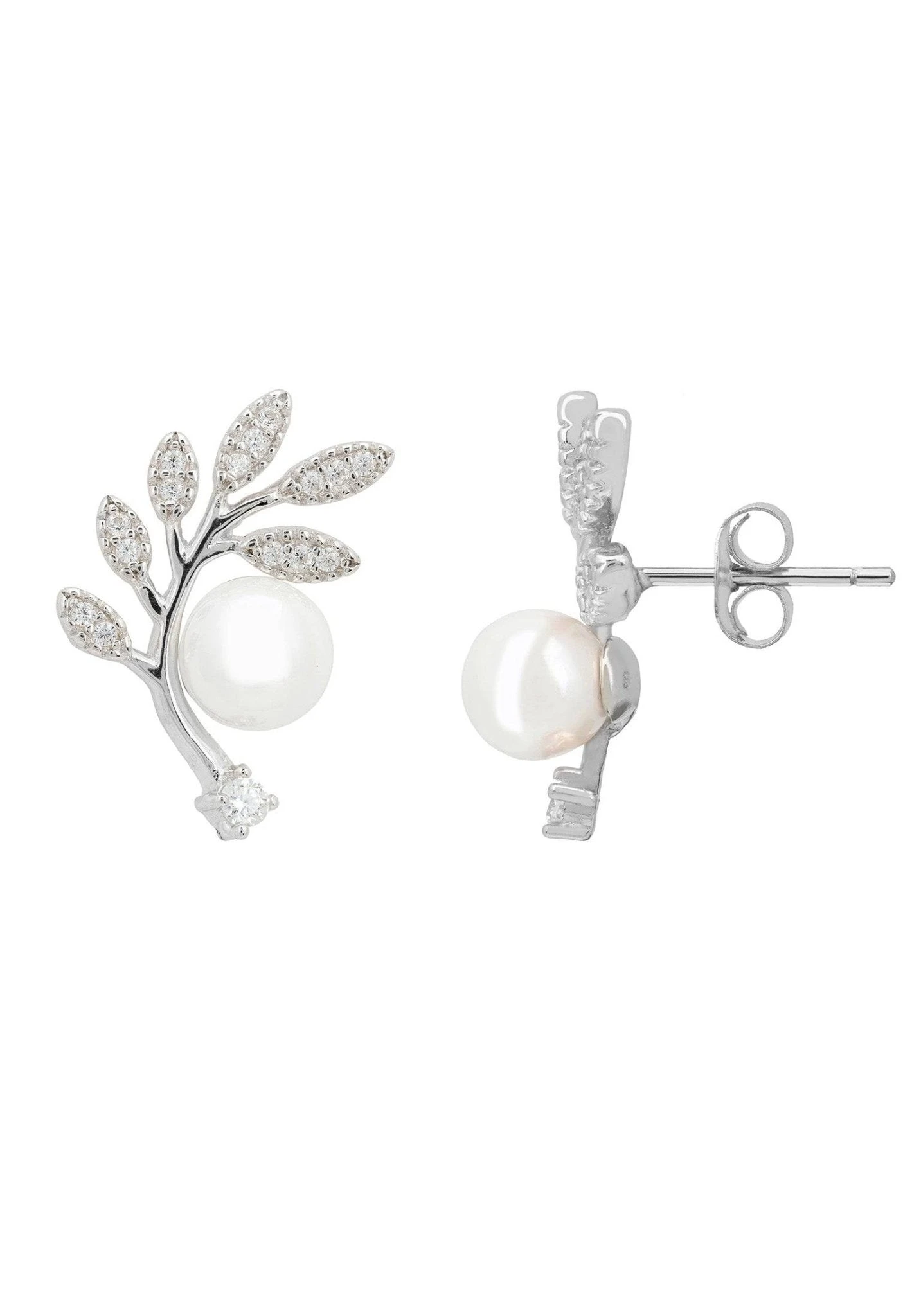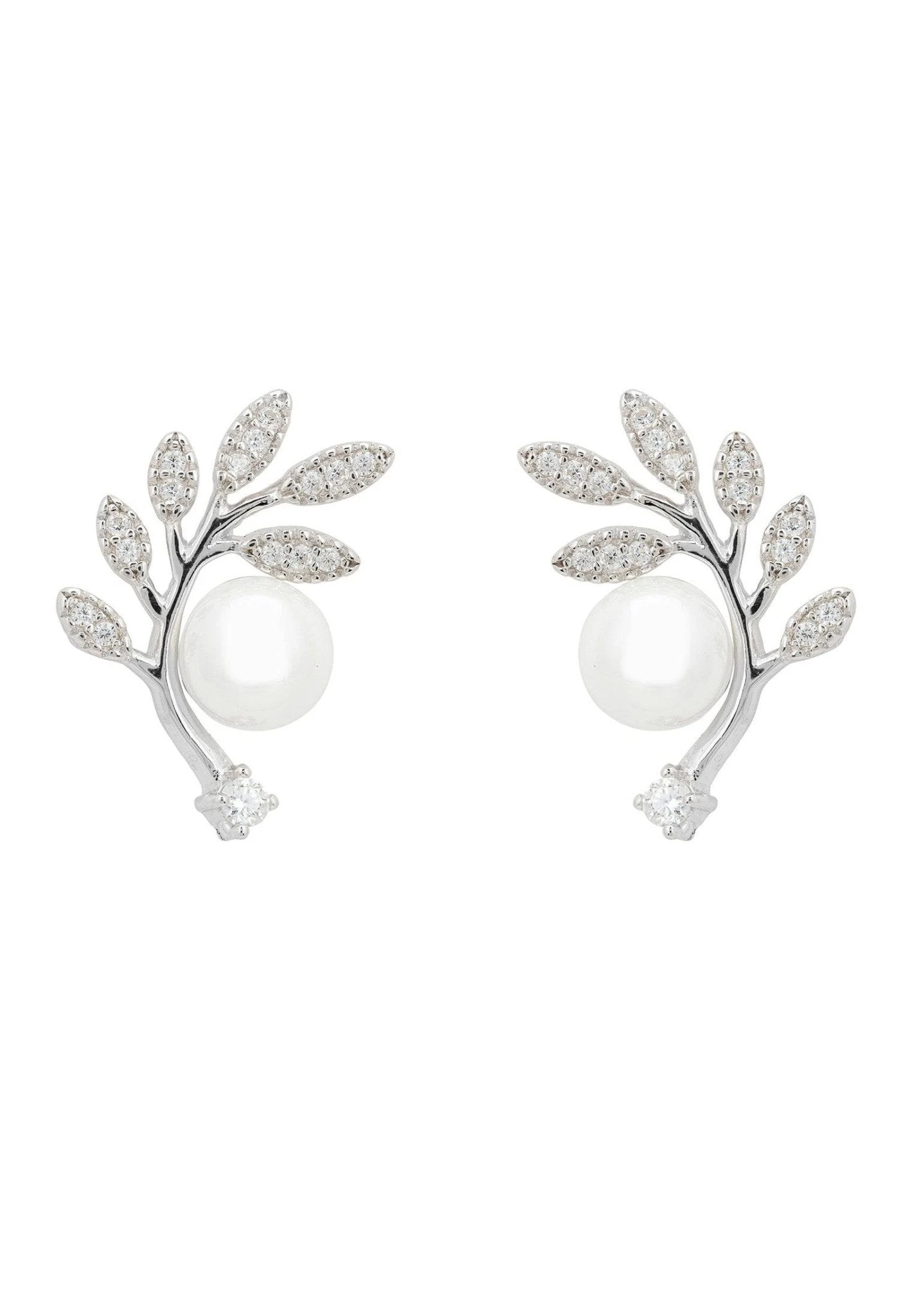 The fern leaf and pearl stud earrings are romantic and chic making these a must have for summer weddings and bridal jewellery. Featuring a sweep of curled fern leaf, enhanced with zircon detailing, encompassing a pretty pearl.