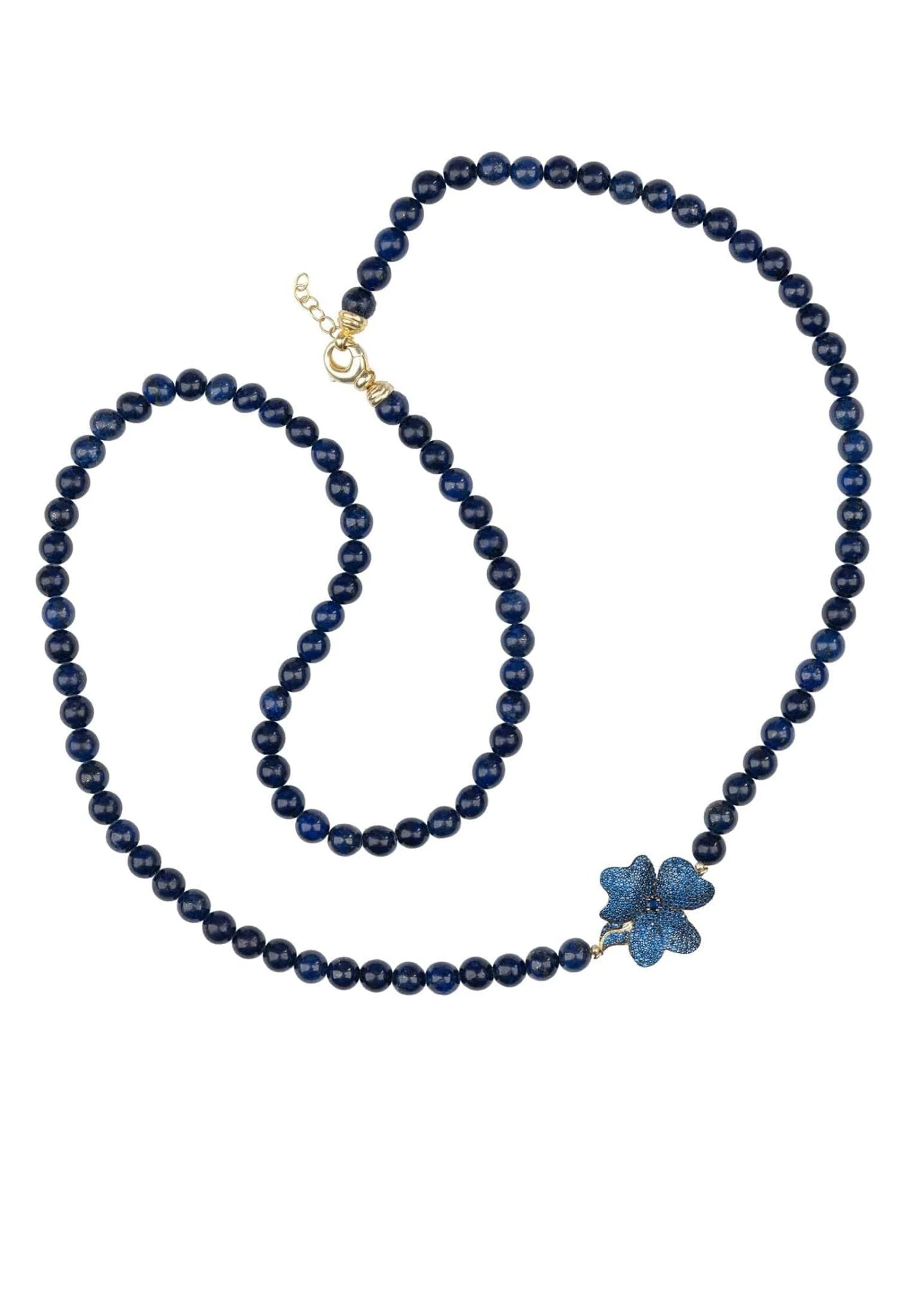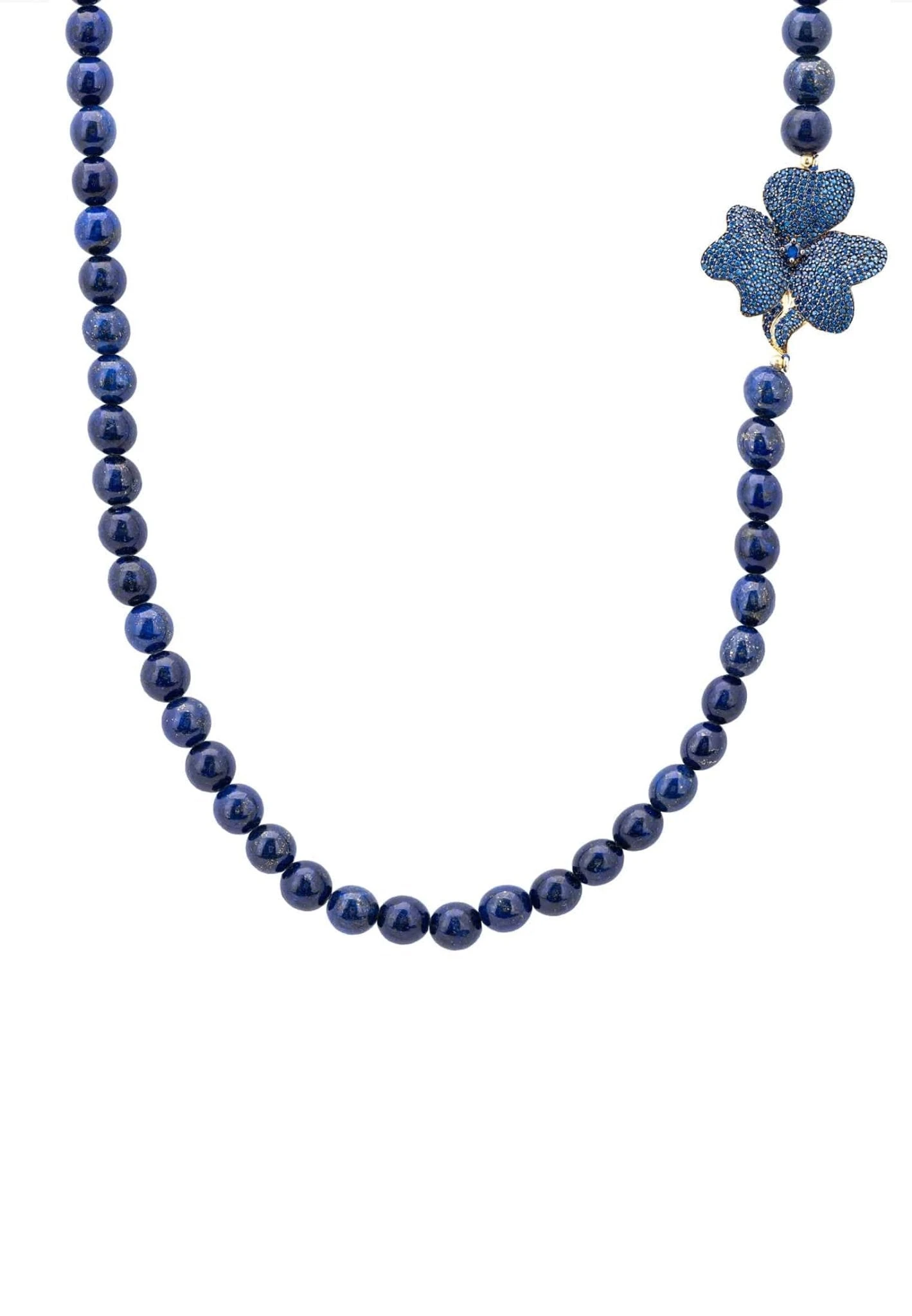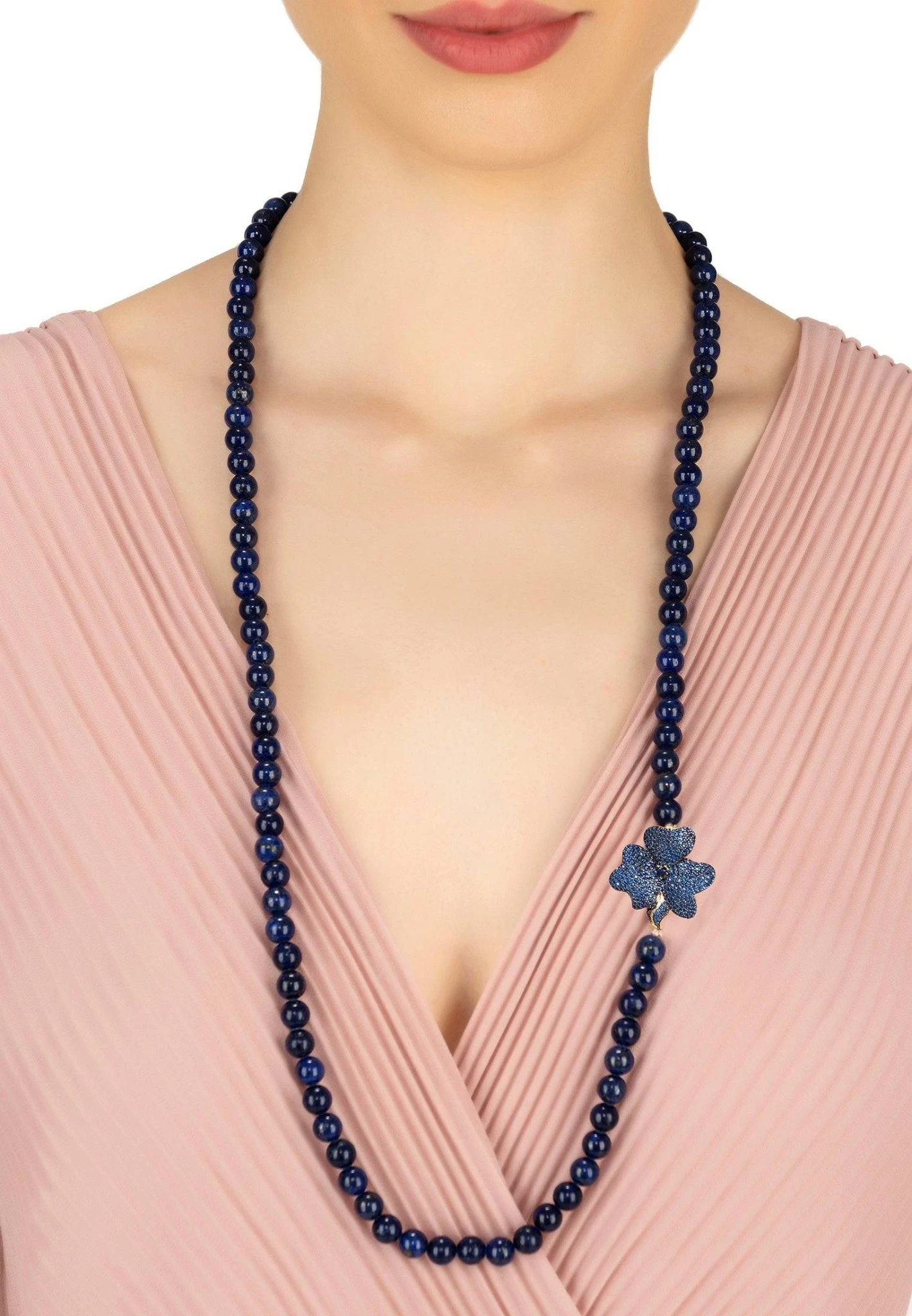 This long Lapis Lazuli gemstone necklace is ideal for those who adore colourful, statement jewellery. Make this stunning long gemstone necklace, which is adorned by a single zirconia encrusted flower, your new wardrobe staple.