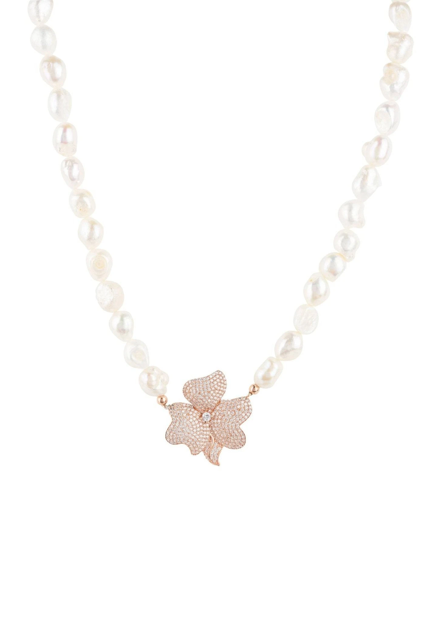 This mid length pearl gemstone necklace is ideal for those who adore statement jewellery. Make this stunning pearl necklace, adorned by a single zirconia encrusted flower, your new wardrobe staple.