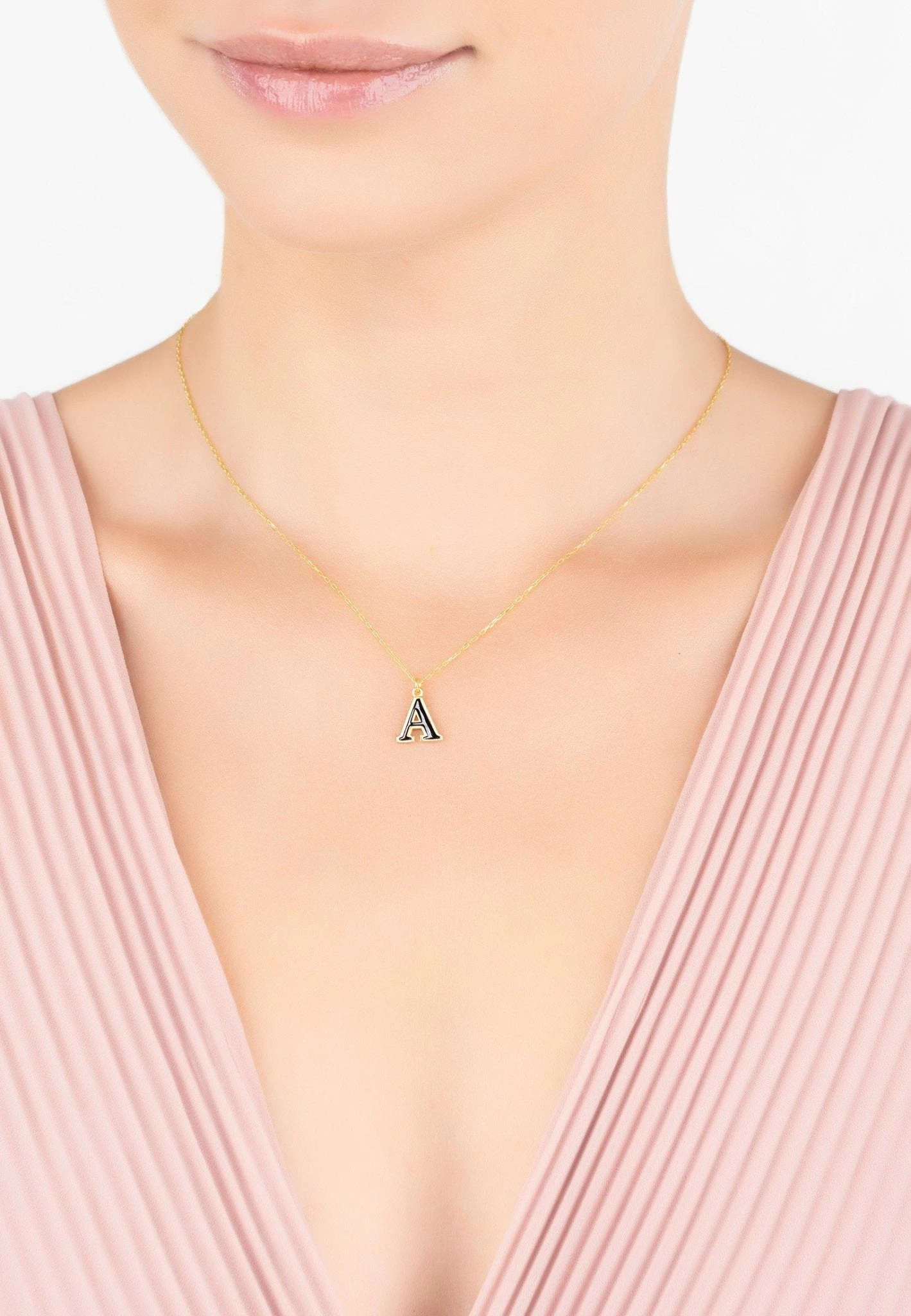 Pretty and petite, this monogram necklace features a metallic setting with an inlay of black enamel. It looks perfect worn alone or, create your own unique style by layering with other necklaces.