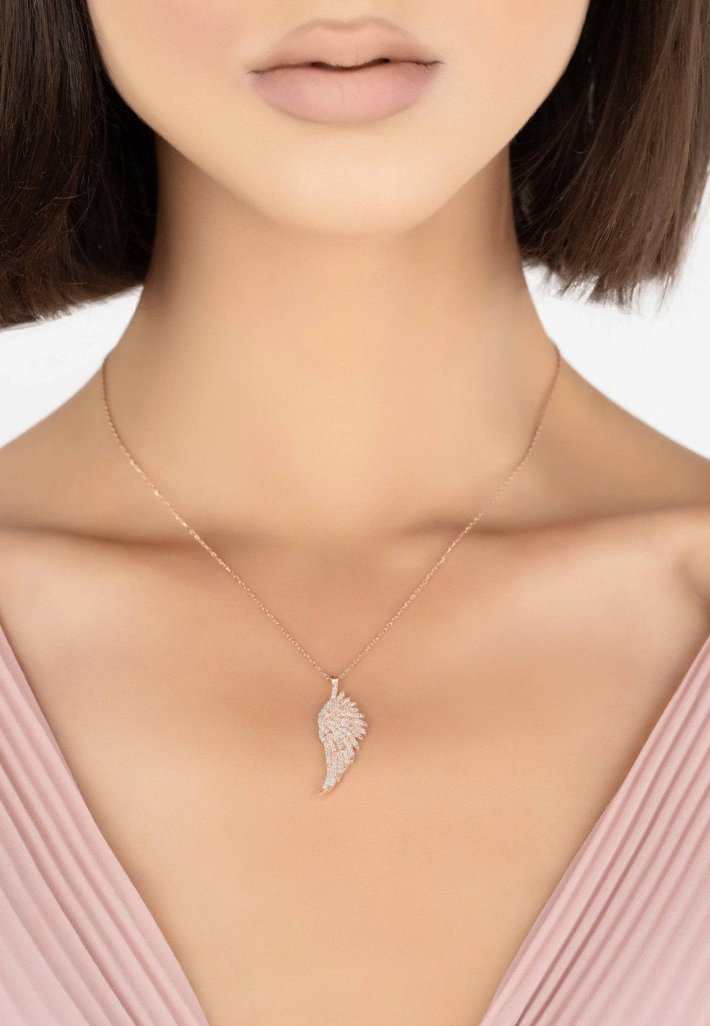 The large Angel wing necklace is perfect for everyday styling. Either worn singularly or layered for a more dramatic look. With a feathered angel wing design, this sparkling necklace is embellished with Latelita signature zircon detailing.