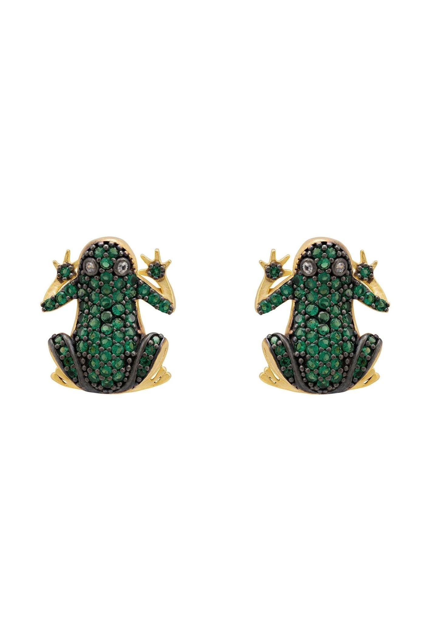 Looking for something unique and stylish to show off your animal love? These Leap Frog Stud Earrings Gold are perfect for you! Made from 925 sterling silver and dipped in gold, these earrings feature a three-dimensional frog design covered in sparkling green zirconia.
