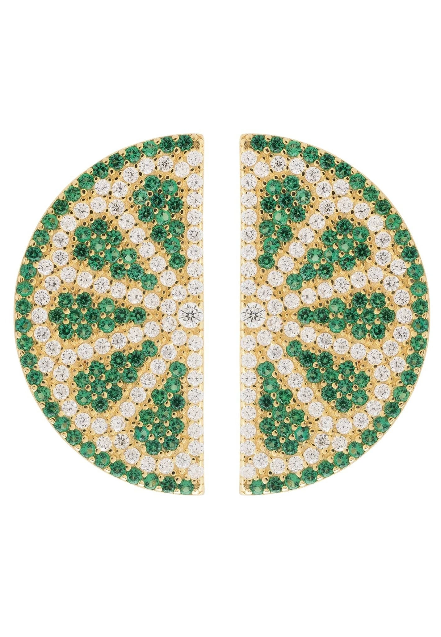 Playful and fun, these fruity lime stud earrings are designed to look like zesty slices of lime. Set with vibrant green and white zircons, these colourful earrings sparkles to add a touch of glitz and glamour to any outfit, making them an essential for holidays and vacations.
