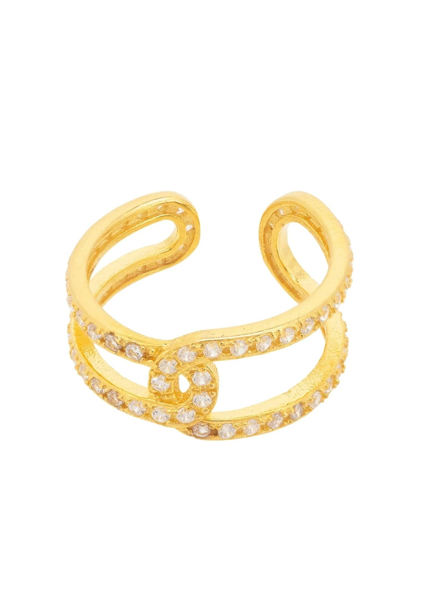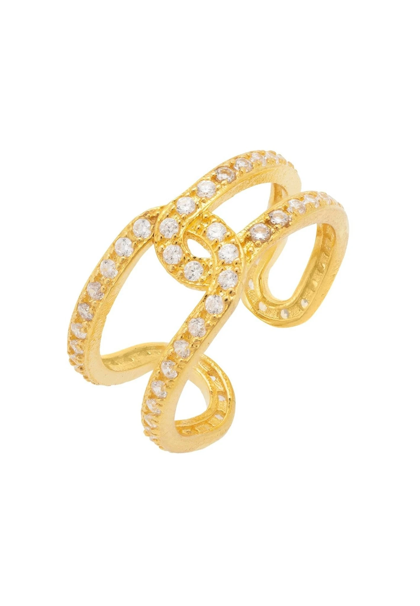Handcrafted in sterling silver and hand set with Latelita signature sparkles to add a touch of everyday luxury. This link designed ring features two double stranded links interlocked in a knot that sits prettily on top of the finger.