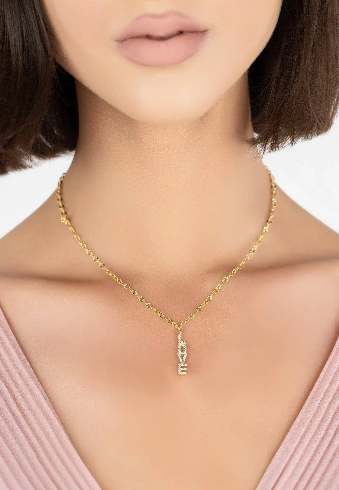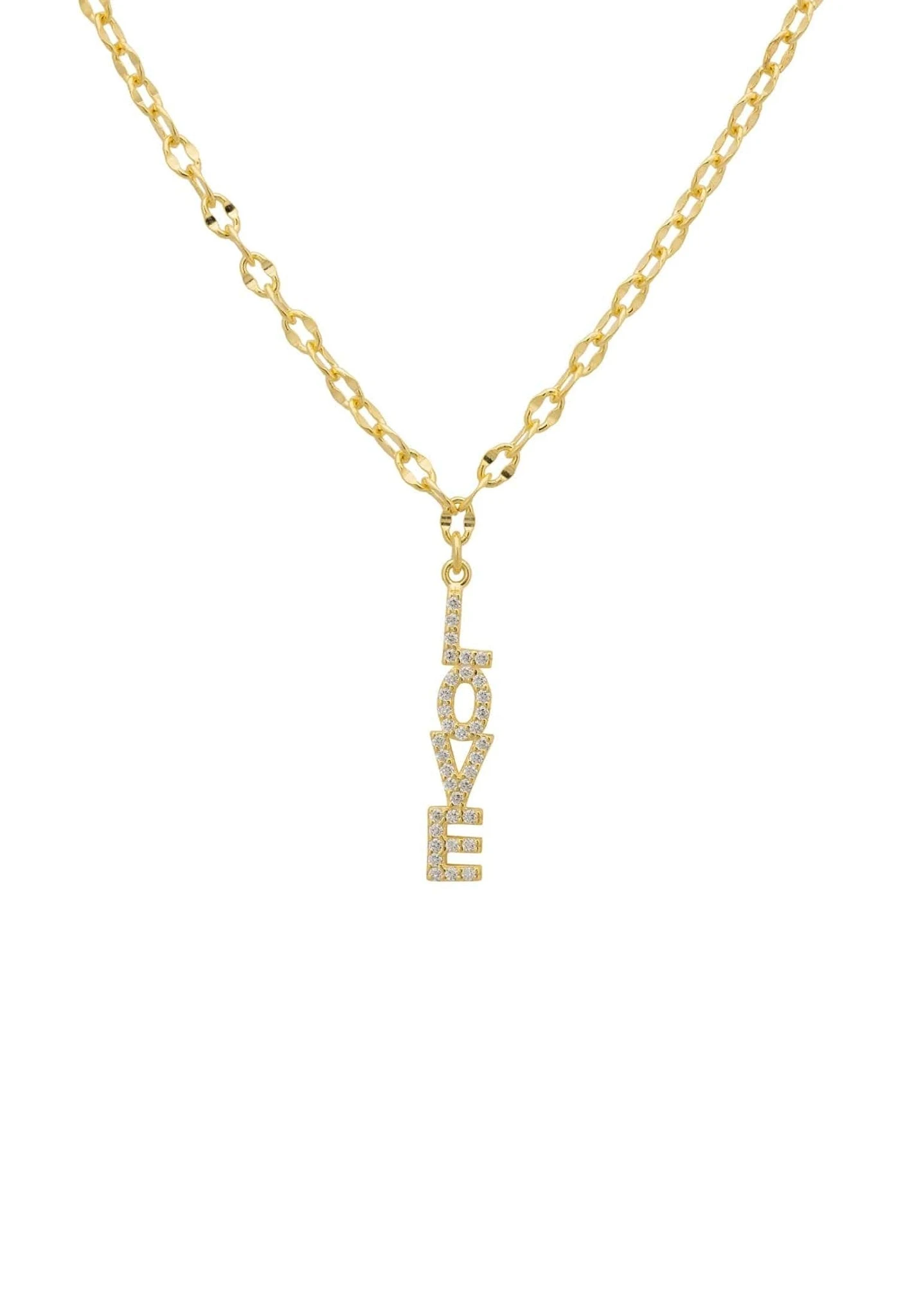 The written word love is adorned with sparkling white cubic zirconia and suspended on a chain. Perfect for those who love delicate jewellery with meaning. The versatility of this necklace means you can wear day or night.