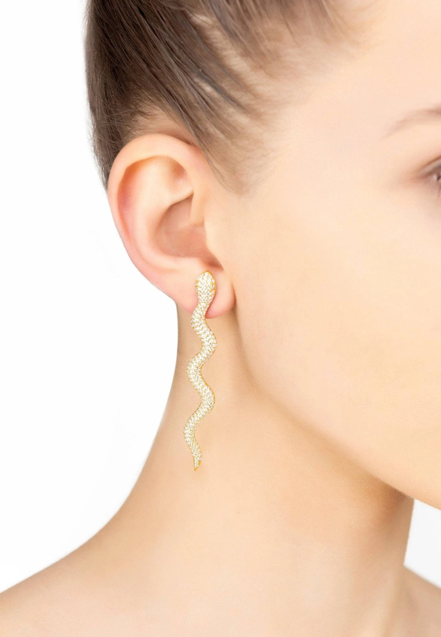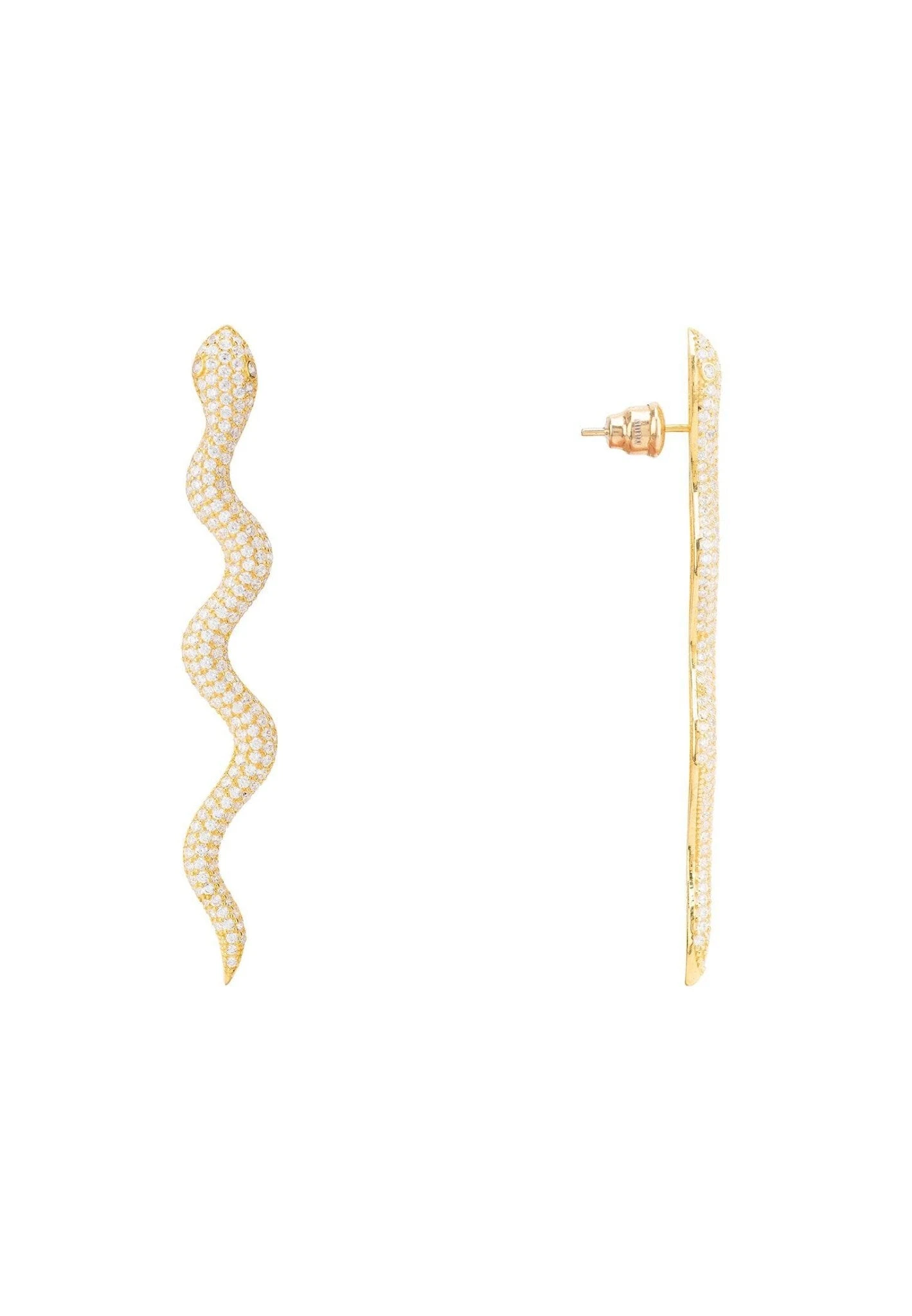 These earrings make a bold statement, enhanced along the length of the snake with sparkling cubic zirconia.