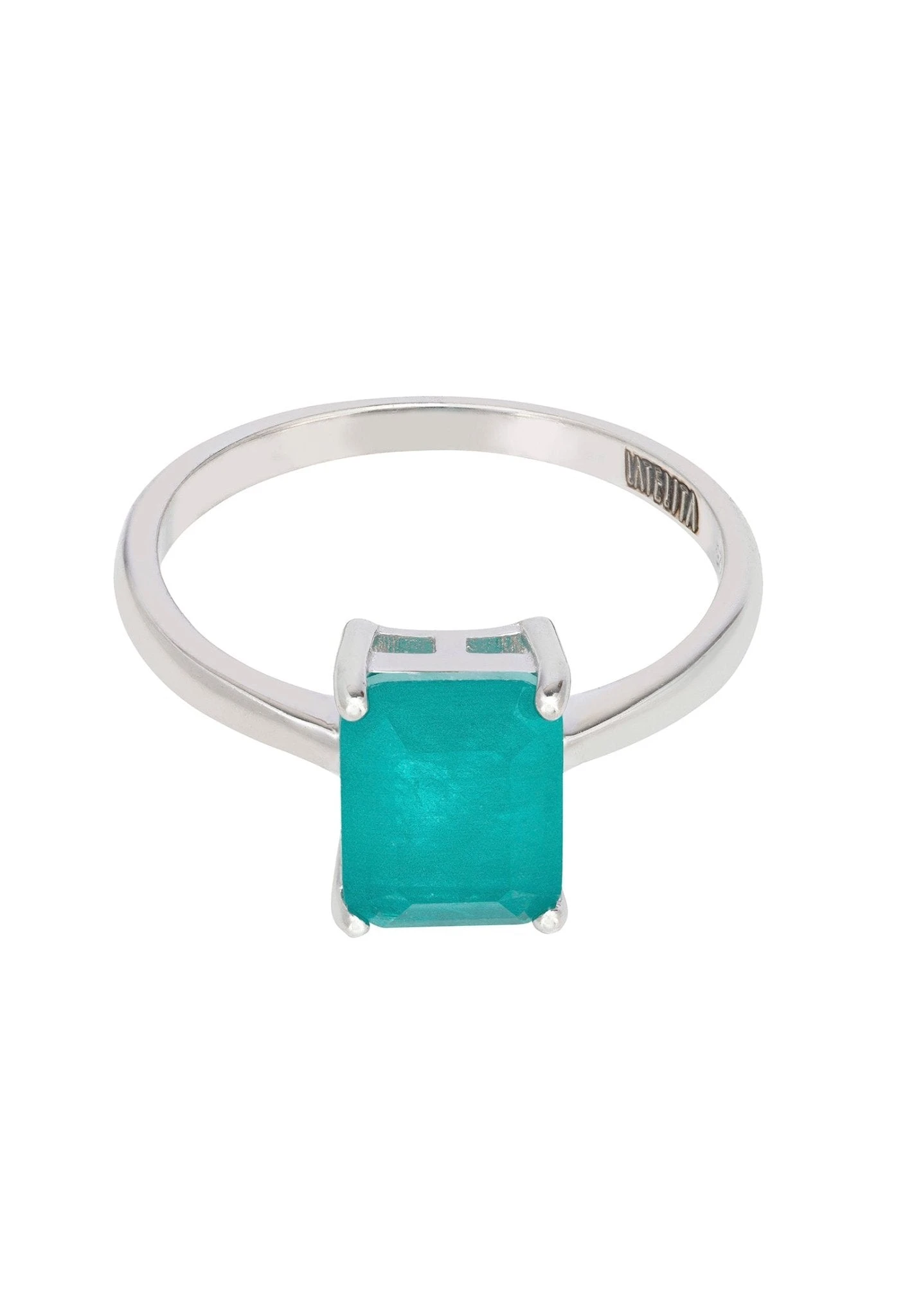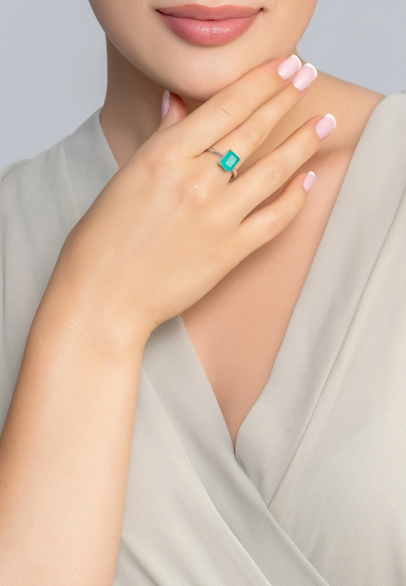 Are you looking for something that will make heads turn? Say hello to the Middleton Rectangle Paraiba Tourmaline Cocktail Ring Silver, handcrafted and designed with elegance and finesse. An eye-catching lab-grown tourmaline sits atop a plain single band in an open rectangular shape setting (0.9cm x 0.7cm)- making it a truly unique piece of jewellery! Looking like it’s been pulled out of a fairy tale, this delicate ring will bring out your inner princess – whatever the occasion.Â