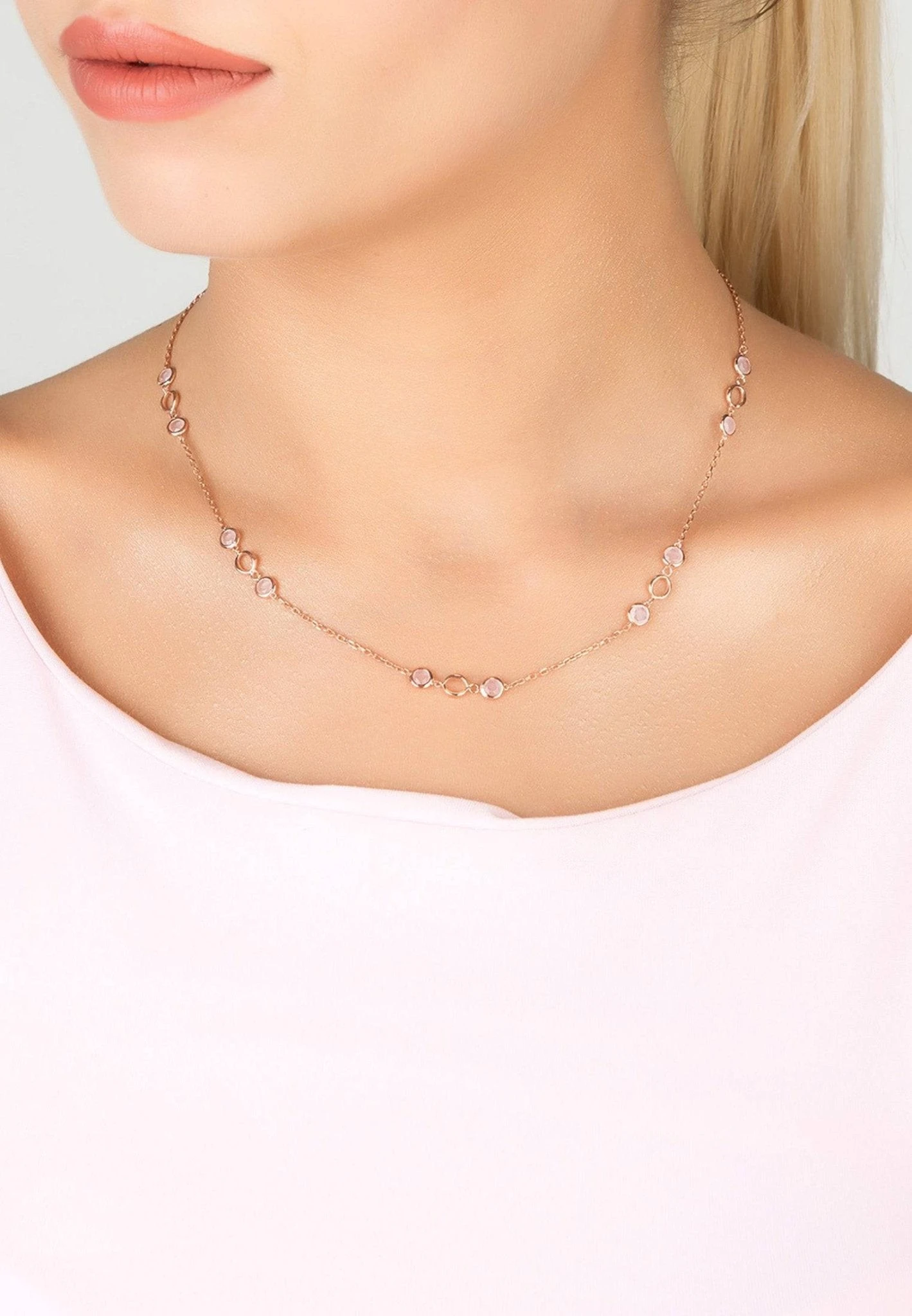 Let this Milan link gemstone necklace be your new wardrobe staple. Ideal for those who love delicate jewellery, this gemstone necklace features ten round cut gemstones spaced evenly on a fine chain in groups of three which incorporates a central hollow link.