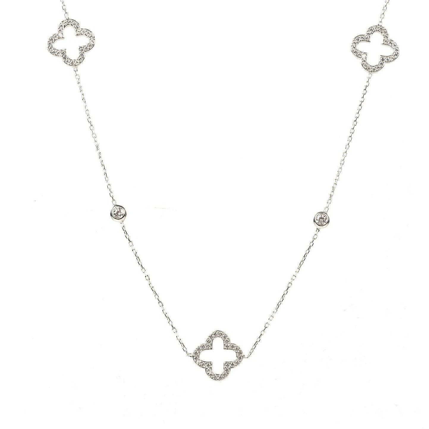 With its dainty silver clover motifs, this necklace from Latelita is a perfect way to add a touch of glamour to your look. The open clover design is delicate and feminine, and the seven sparkling clover motifs, hand-set with multifaceted white zircons, will take your style to the next level. Whether you’re dressing up for a special occasion or just want to add a little bit of sparkle and a touch of glamour to your everyday look, this necklace is a great choice.
