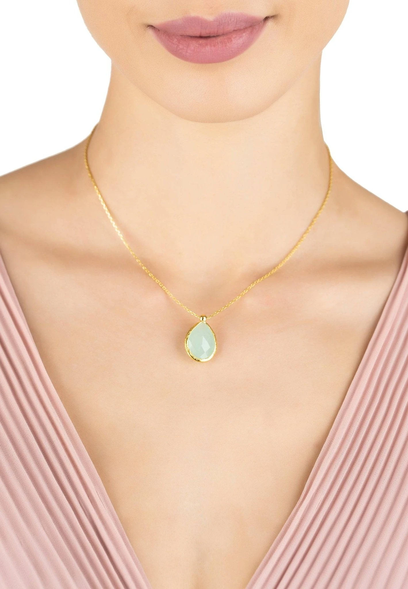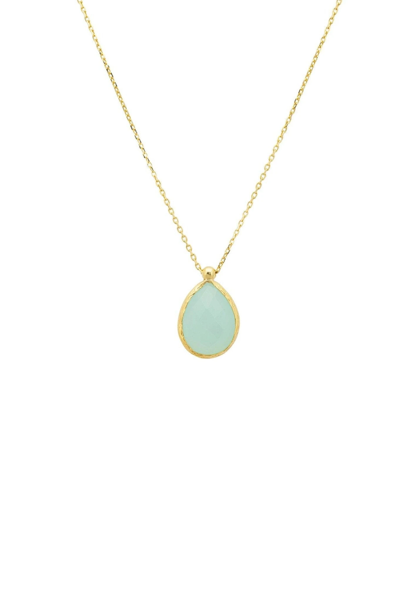 The Petite drop necklace is ideal for those who adore colourful jewellery. Featuring a medium sized teardrop shaped gemstone, beautifully set within a metallic setting which frames its outer edge, topped with a metallic bail to allow the chain to move freely through.