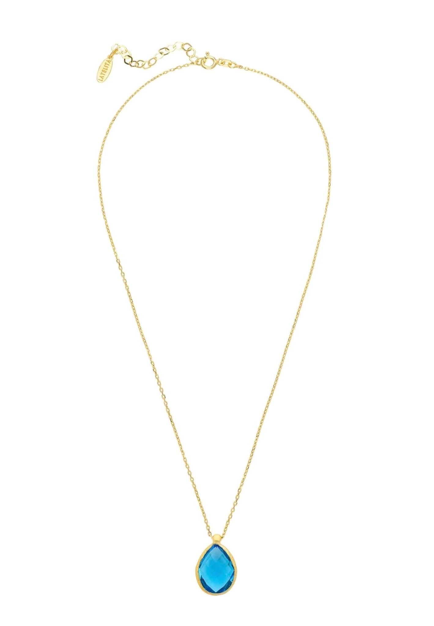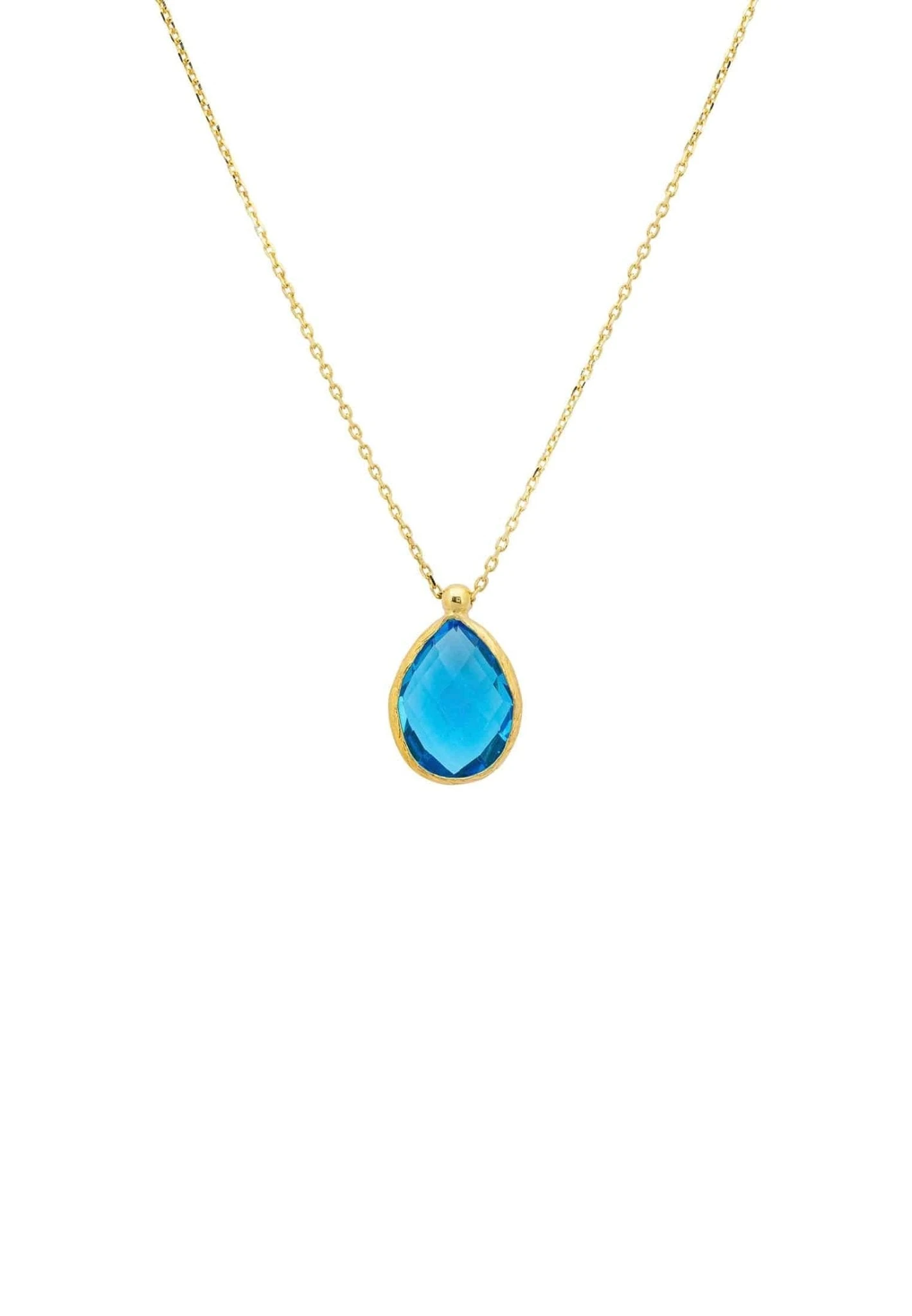 The Petite drop necklace is ideal for those who adore colourful jewellery. Featuring a medium sized teardrop shaped gemstone, beautifully set within a metallic setting which frames its outer edge, topped with a metallic bail to allow the chain to move freely through.