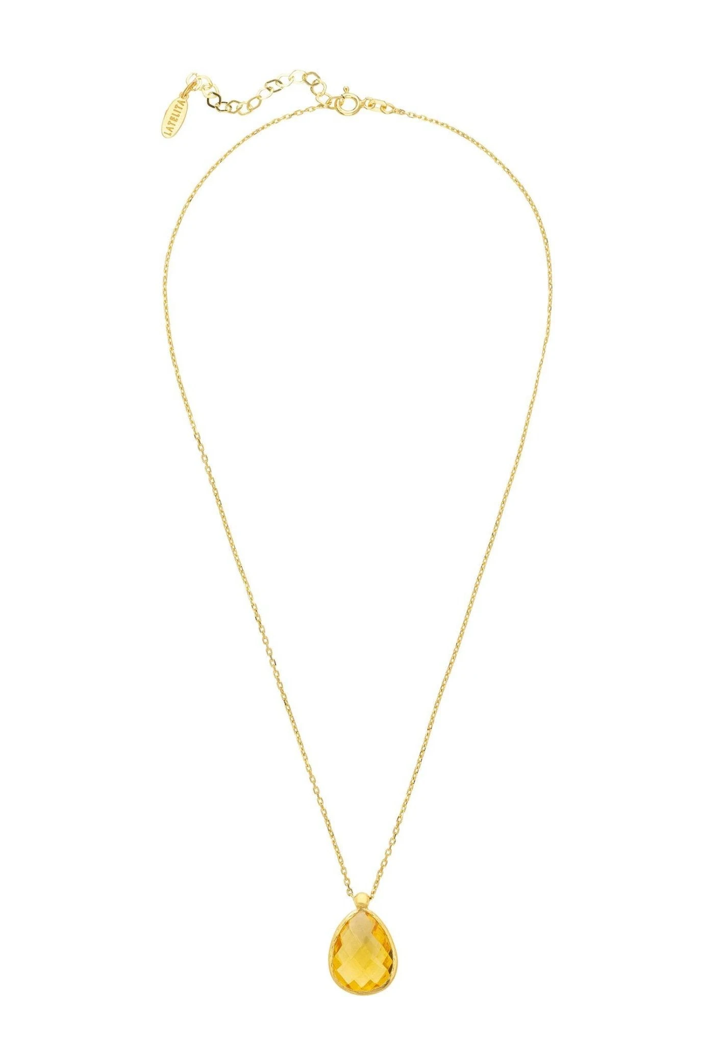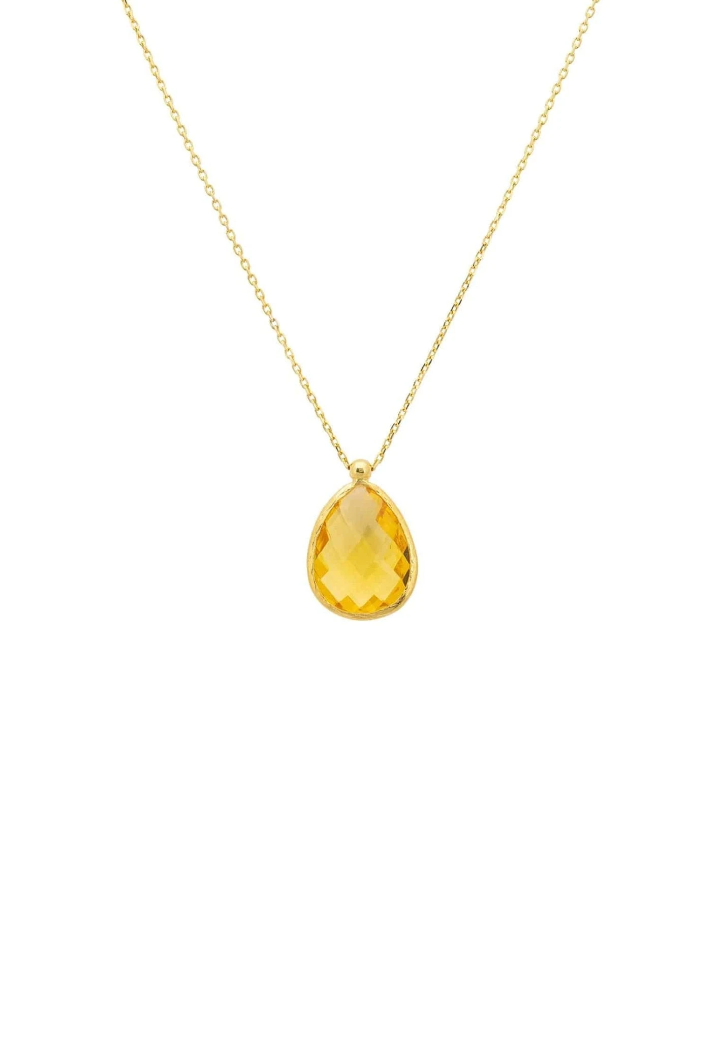 The Petite drop necklace is ideal for those who adore colourful jewellery. Featuring a medium sized teardrop shaped gemstone, beautifully set within a metallic setting which frames its outer edge, topped with a metallic bail to allow the chain to move freely through.