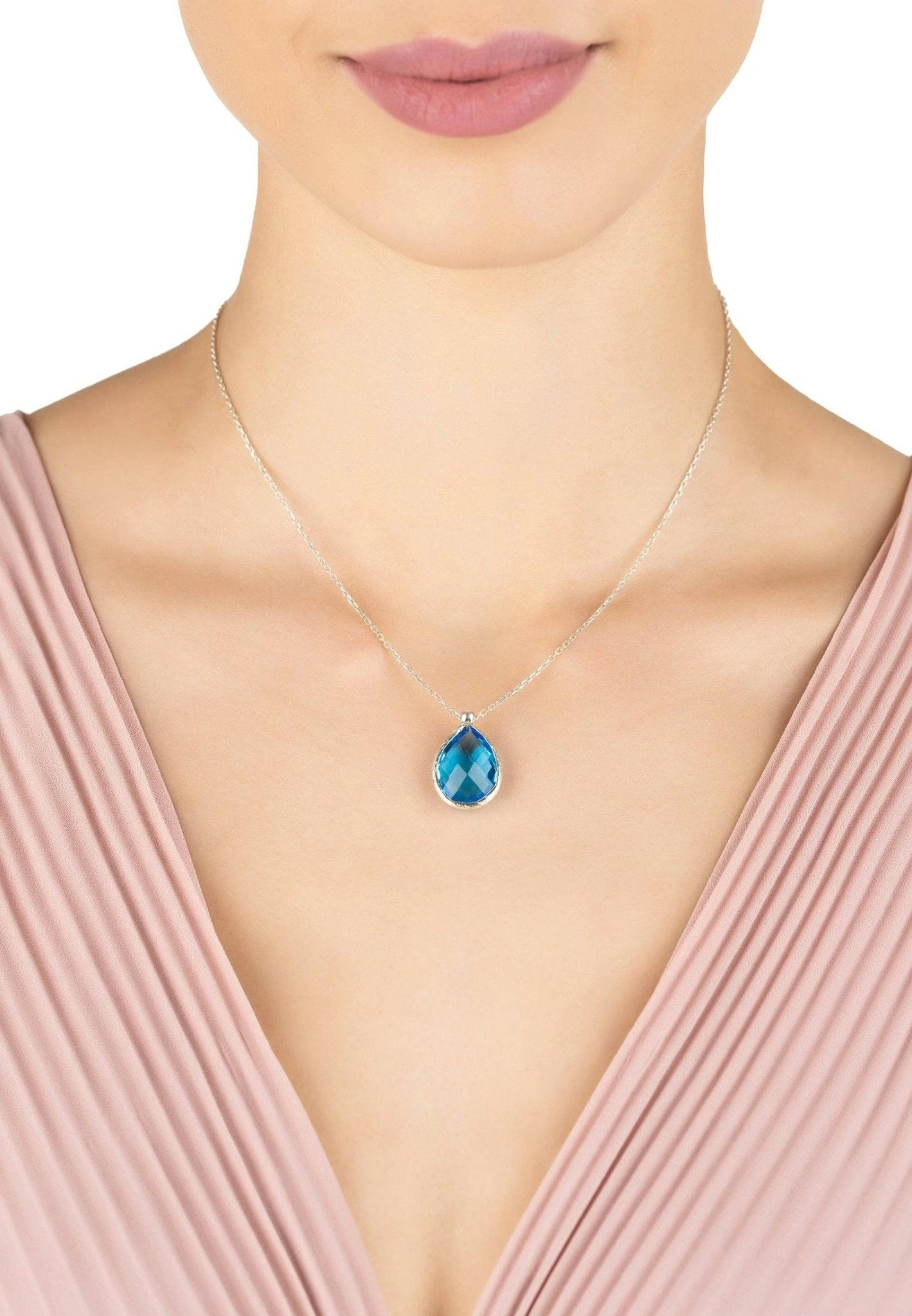 The Petite drop necklace is ideal for those who adore colourful jewellery. Featuring a medium sized teardrop shaped gemstone, beautifully set within a metallic setting which frames its outer edge, topped with a metallic bail to allow the chain to move freely through.