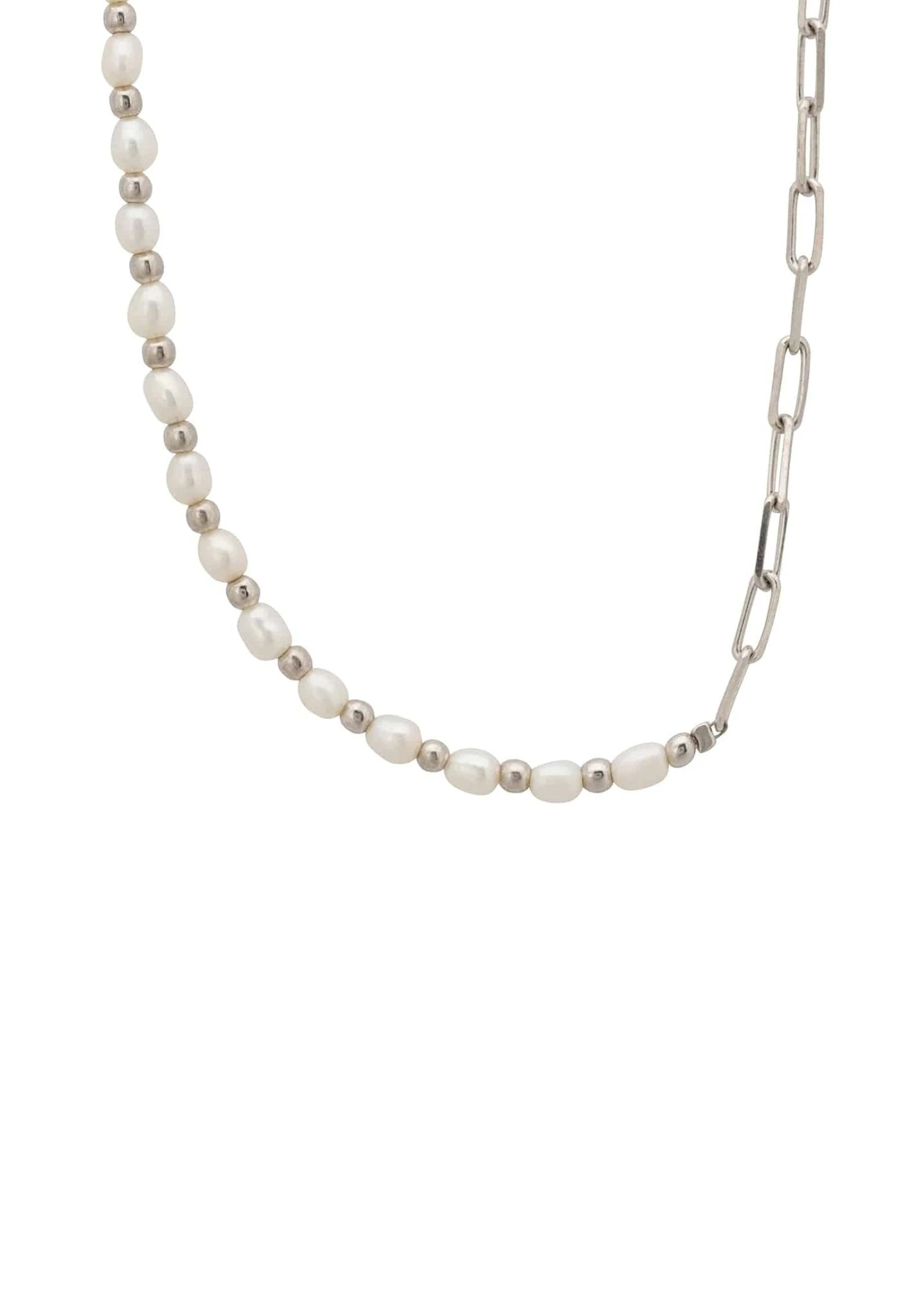 Let the petite pearl strand necklace be your new wardrobe staple. Ideal for those who love delicate jewellery. To the front aspect of this adorable choker style necklace, lay a single strand of small white pearls with metallic beads in-between. The back has been left as a length of paperclip chain.