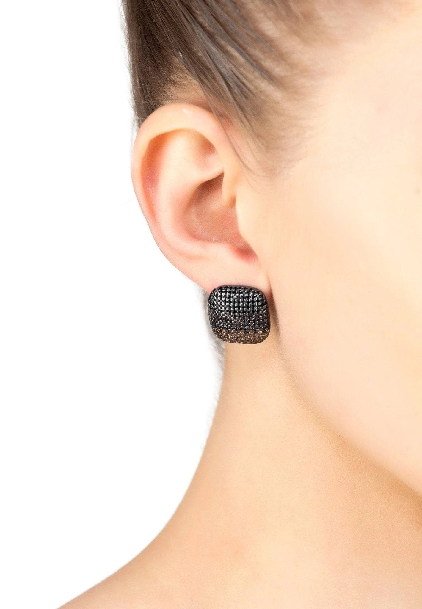 Add just the right amount of sparkle to your ear with these timeless and elegant stud earrings. The pillow talk large stud earrings, are square shaped and with their bevelled design look like a small puffed up pillow of loveliness.