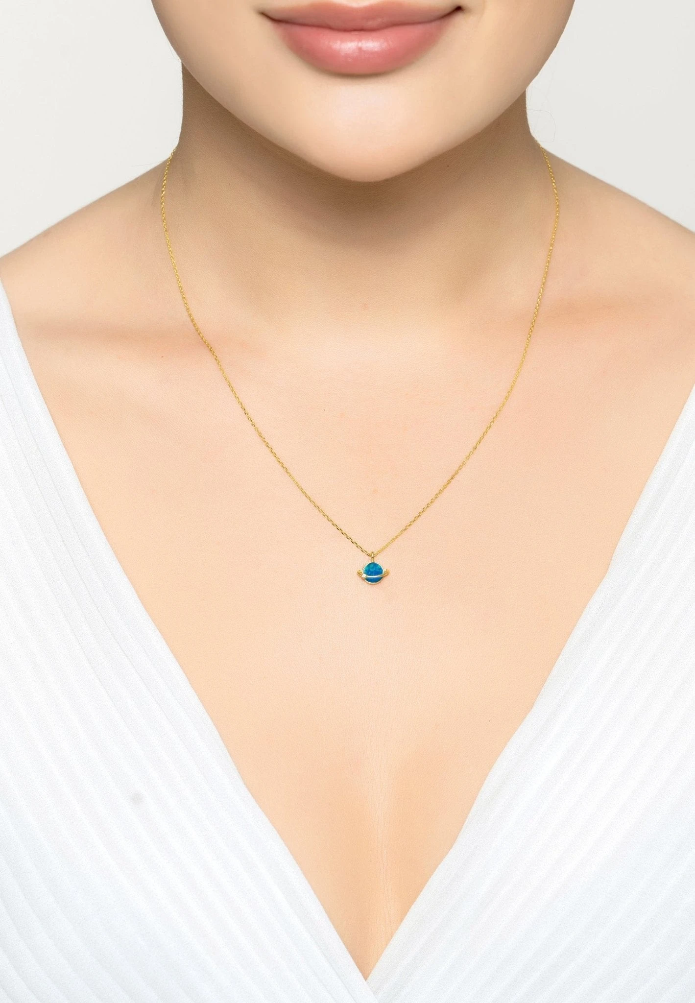 Introducing the Saturn Galactic Opalite Necklace Gold! For anyone who loves to explore the night sky or admires science and astronomy, this beautiful necklace, handmade from 925 sterling silver dipped in 18ct gold, will be a great addition to any jewellery collection.