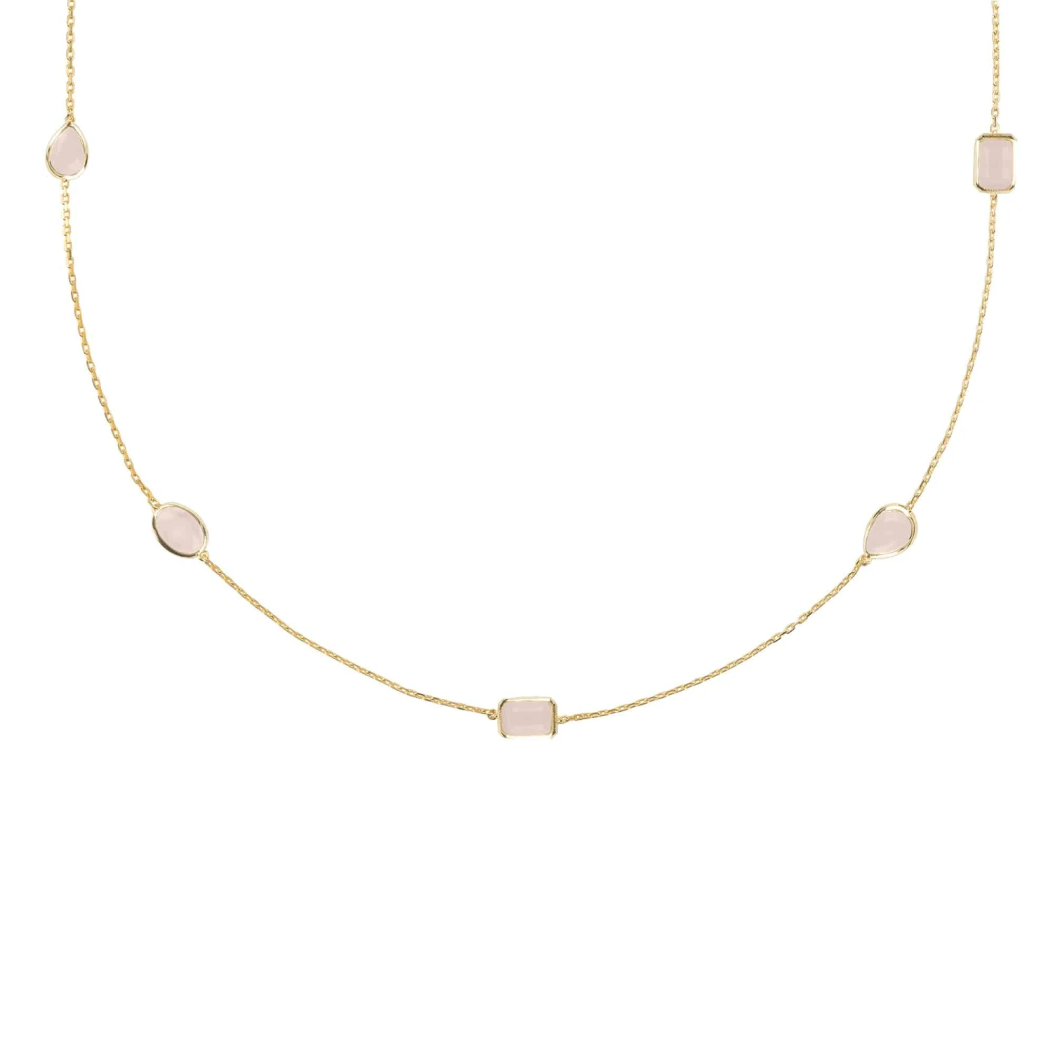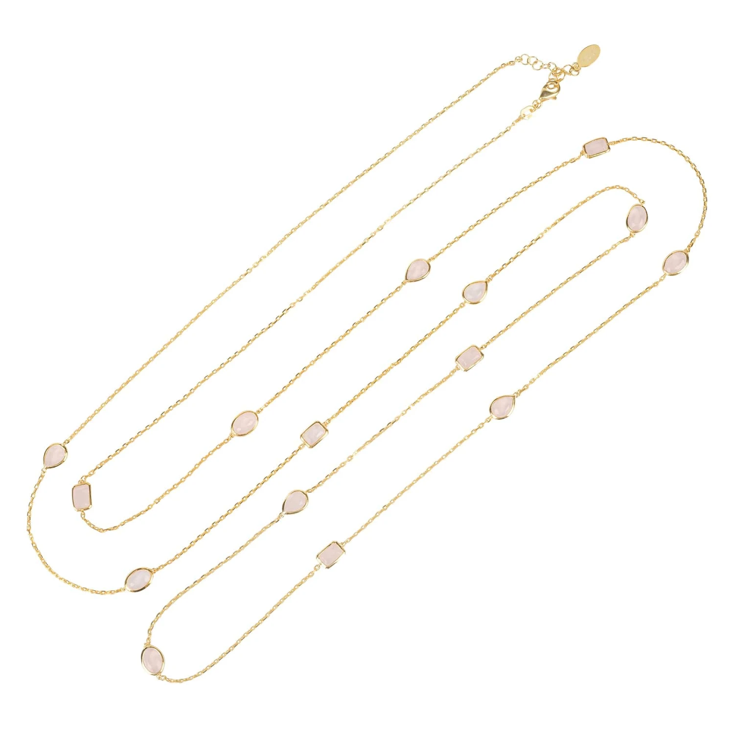 Let the Venice necklace be your new wardrobe staple. Ideal for those who love delicate jewellery, this gemstone necklace features oval, rectangular and teardrop cut cabochons spaced on 120cm of fine chain.