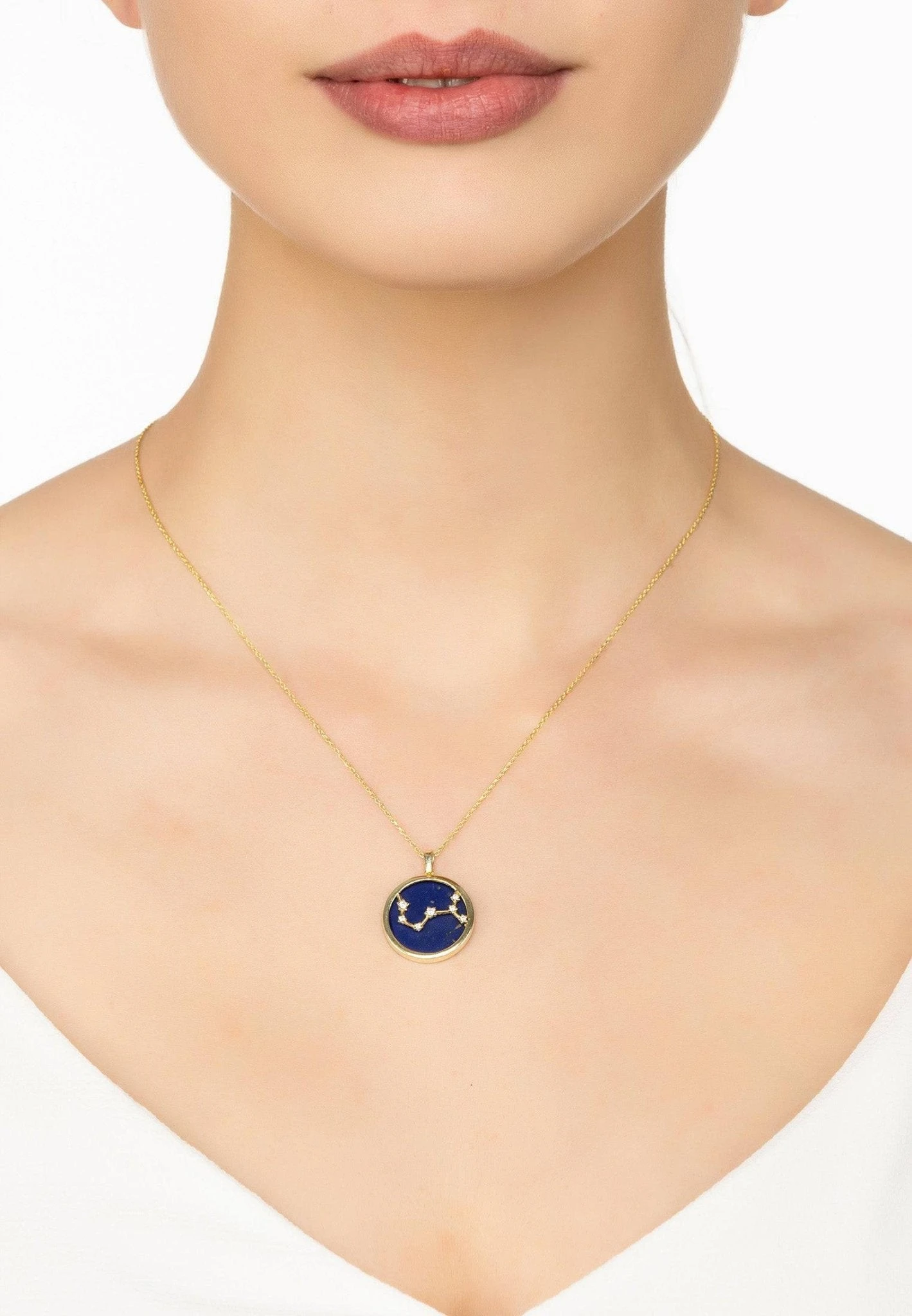 Showcase your zodiac sign with the exquisite Zodiac Lapis Lazuli Gemstone Star Constellation Pendant Necklace! Whether you’re looking for a special gift or a little something to treat yourself, this unique pendant is guaranteed to make heads turn. Made of beautiful lapis lazuli and gold-dipped 925 sterling silver, this necklace is guaranteed to turn heads. The night sky’s majestic beauty is mirrored in the wondrous lapis, which makes it an ideal backdrop for this sparkling star constellation pendant that shines with brilliance. The back of the pendant features cut-out stars with lapis lazuli showcasing through and an engraving of your own star sign name!
