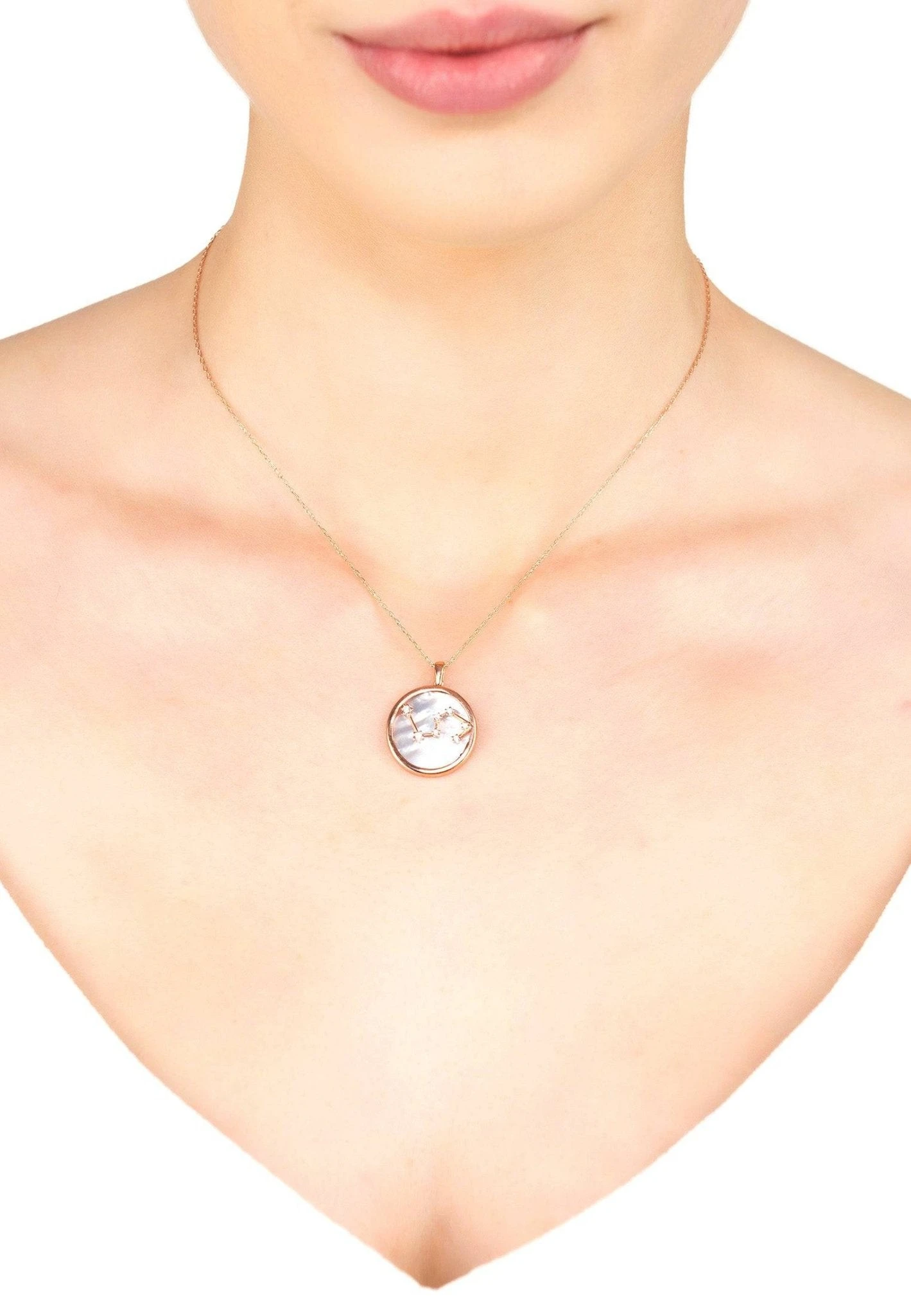The natural beauty of white mother of pearl makes the perfect back drop to the sparkling star constellation in this zodiac pendant necklace. The reverse of this pendant is equally as beautiful, featuring cut-out stars with the soothing properties of mother of pearl gently peeping through and the engraved name of your star sign.